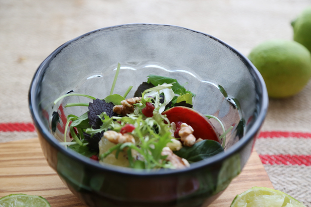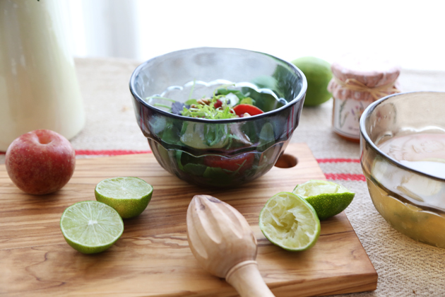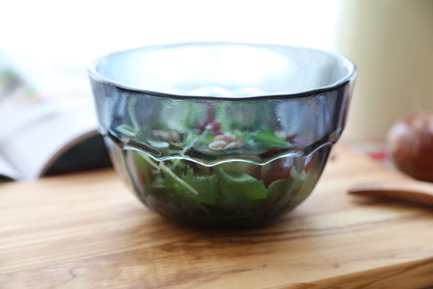 帶點汽泡的手工質感,透涼的玻璃碗盛裝清爽低熱量的生菜沙拉是完美搭配