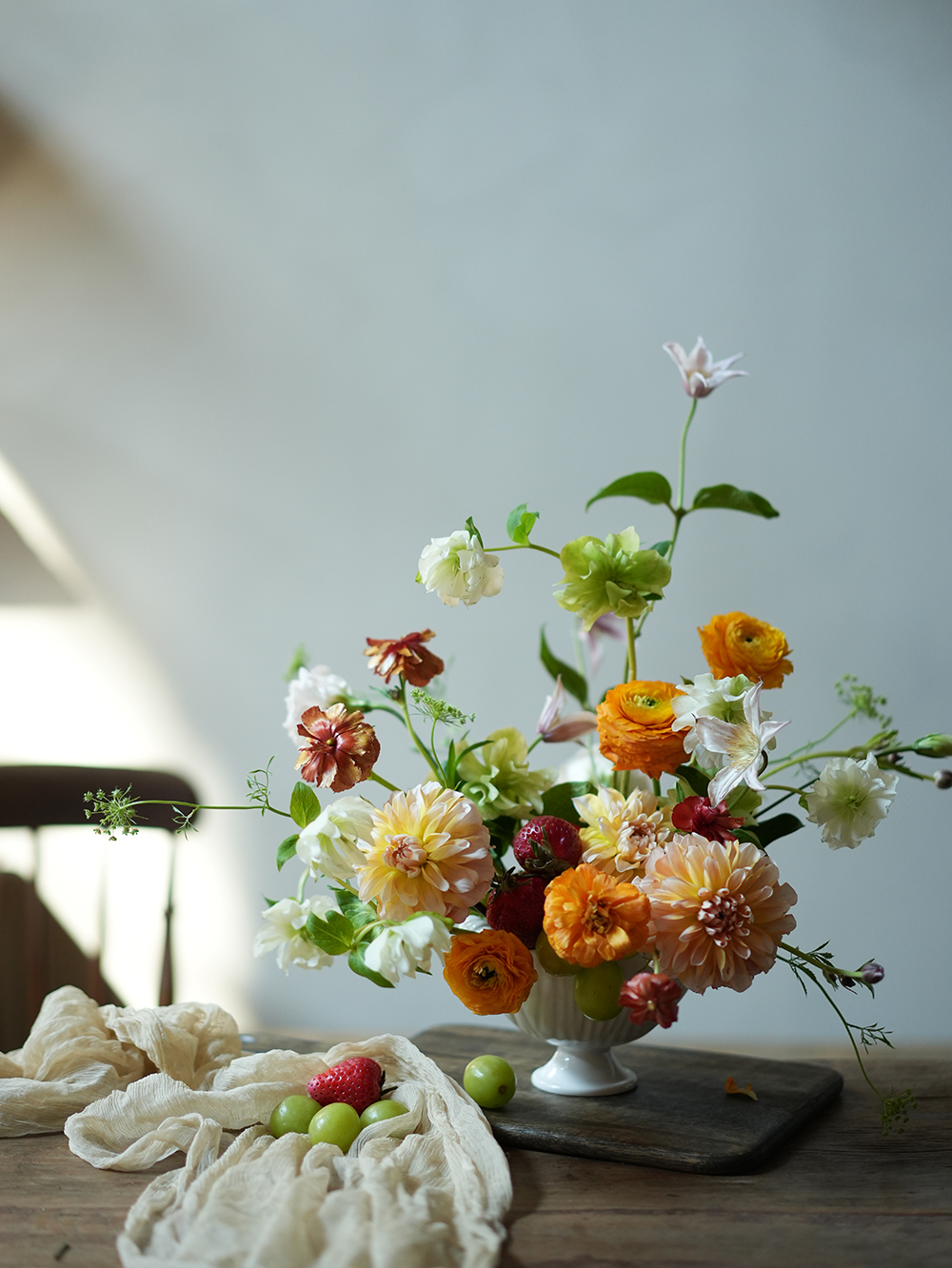 課程金額|$ 5280 (含花材、白郁民陶作家白瓷花器、甜點、2款茶飲)