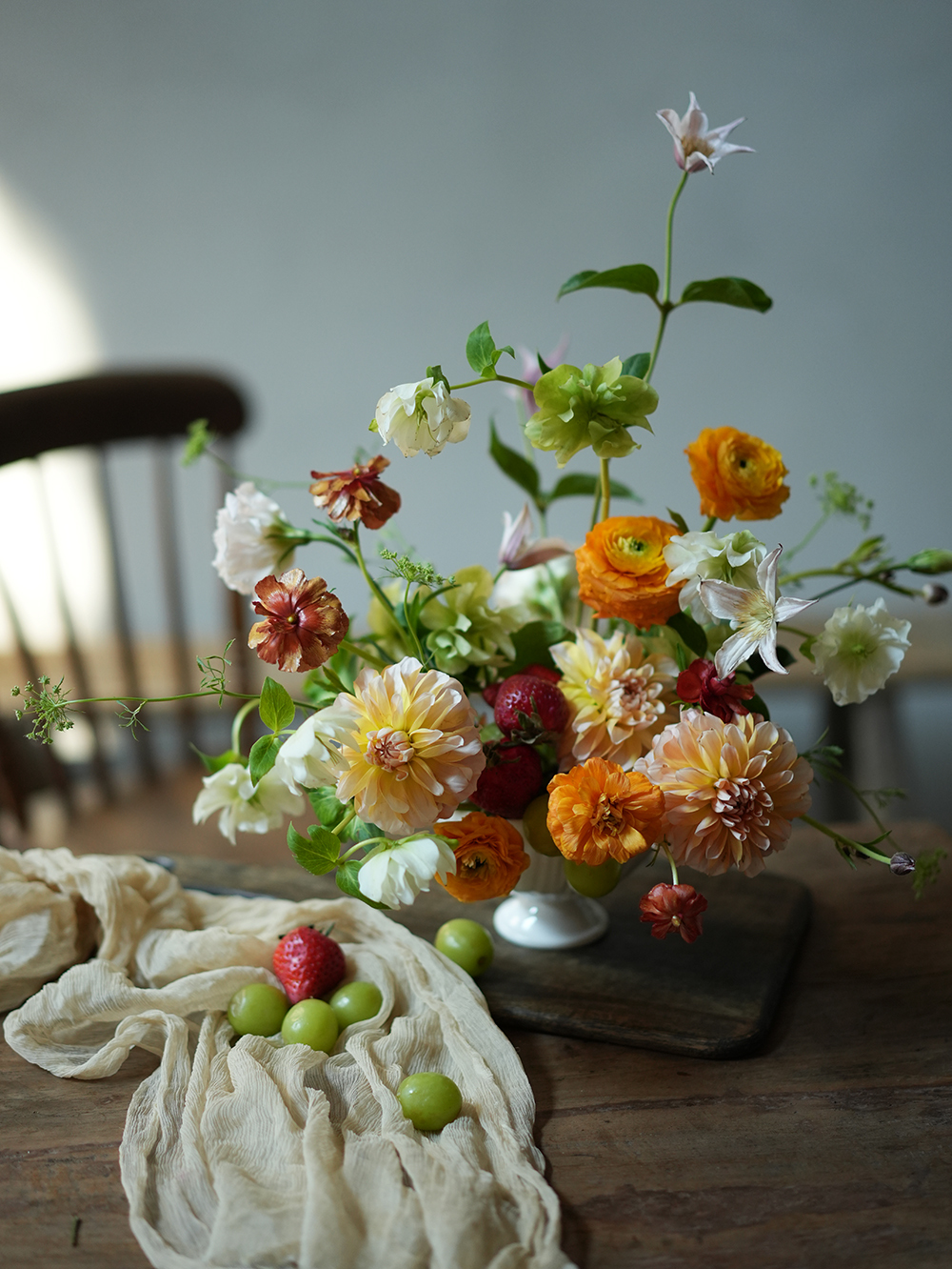 課程金額|$ 5280 (含花材、白郁民陶作家白瓷花器、甜點、2款茶飲)