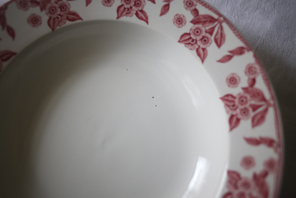 盤子已精選,但老件則會有老面容,貼花褪淡或不對齊、髮絲紋、背面小嗑碰的狀況,不影響使用