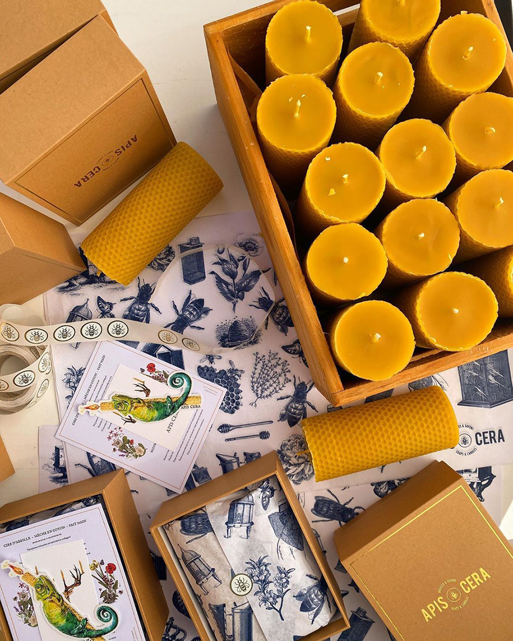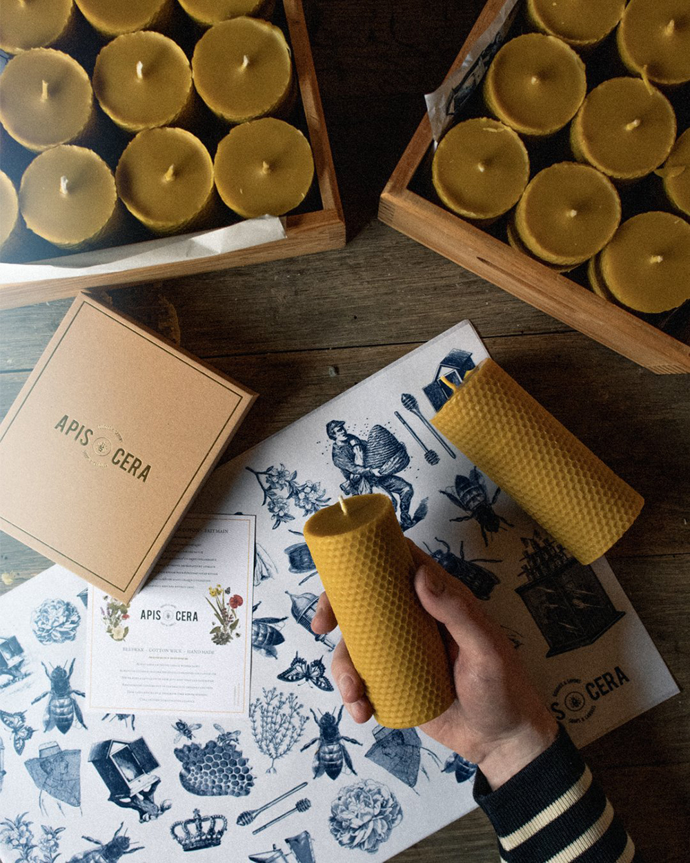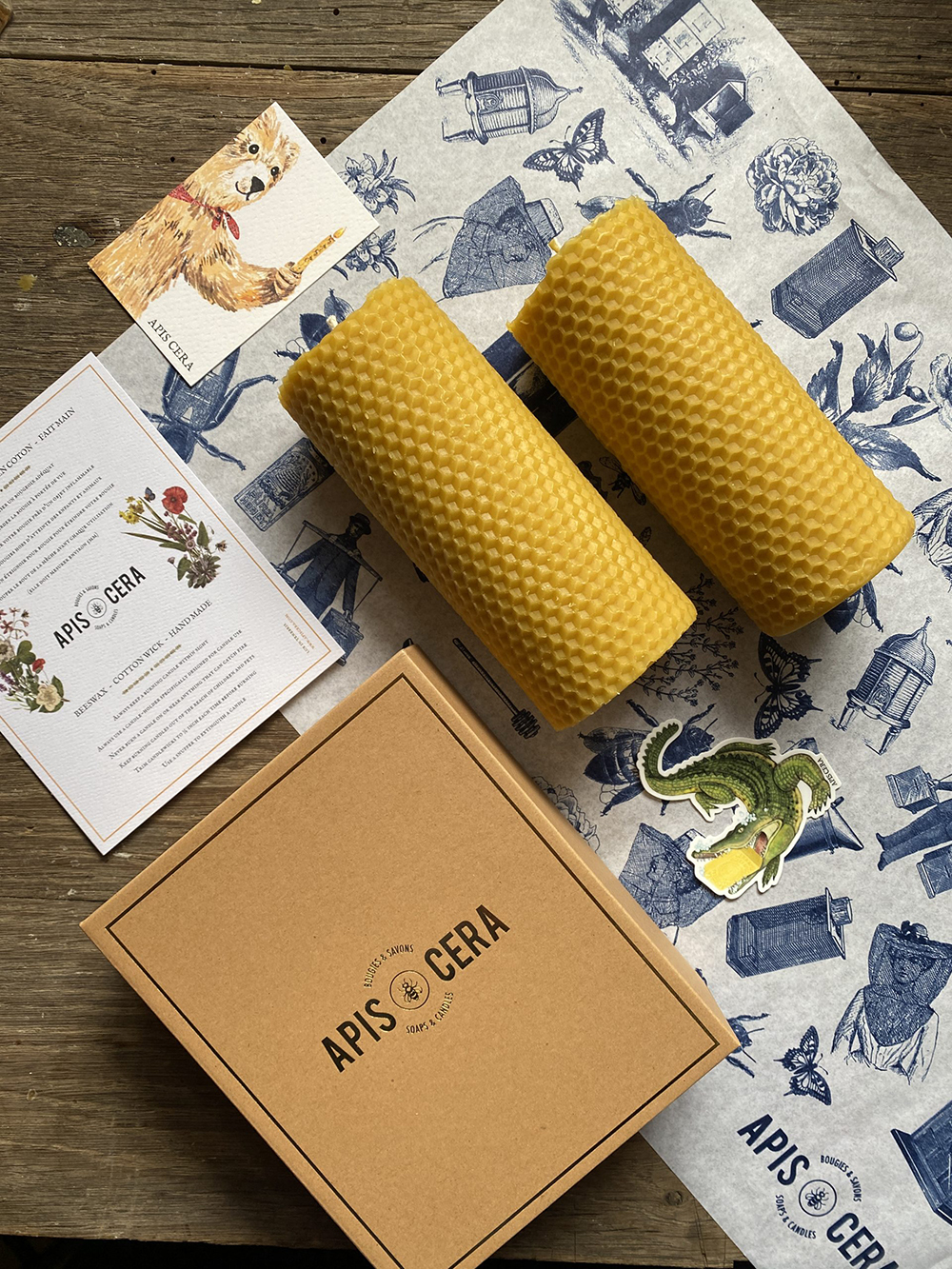 是一種手工製作的蜂蠟柱蠟燭。它也有蜂窩壓紋紋理,但與 Lucienne 不同的是,它具有倒入模具的特殊性。