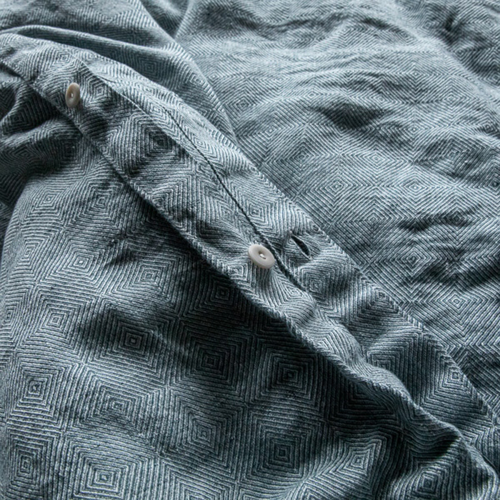 該系列包括合身鬆緊床單、枕套和被套,所有產品均採用這種幾何菱形圖案,為您的臥室帶來低調且非常個性化的外觀