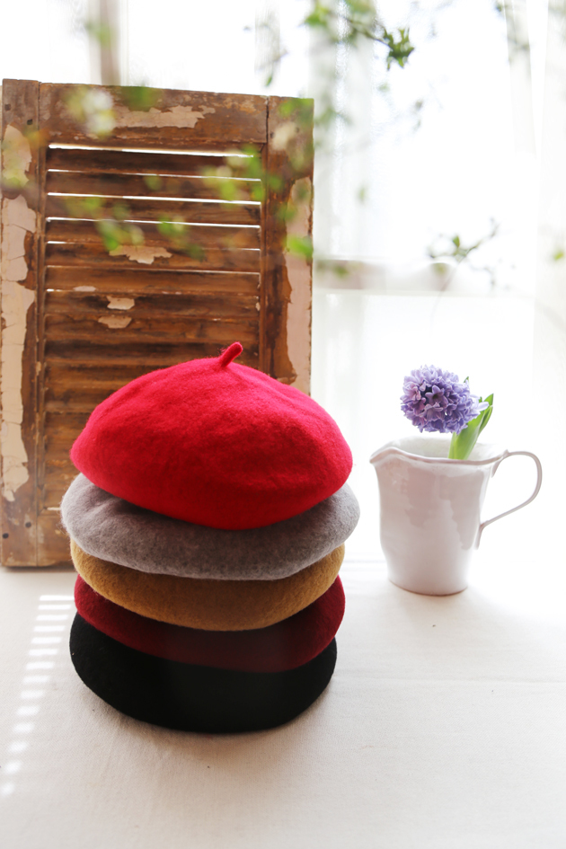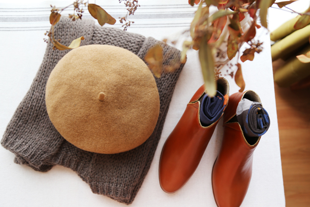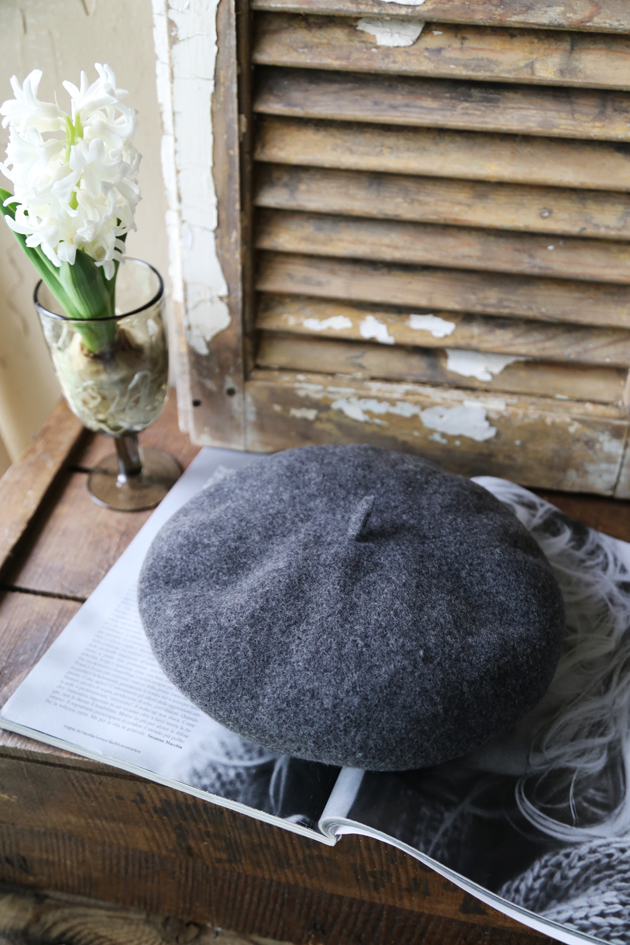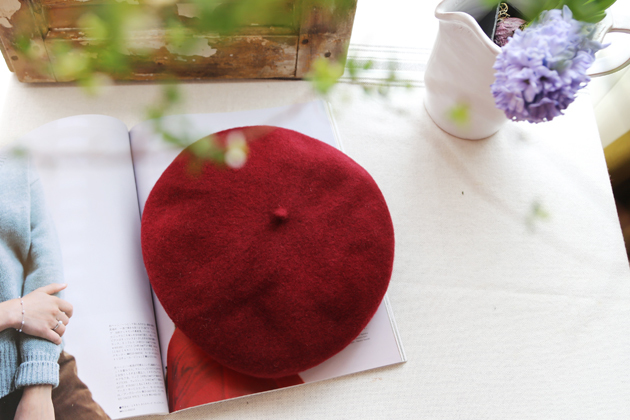 一直以來非常喜歡毛呢材質的béret貝蕾帽,像是有蒂頭的帽子造形,圓圓的很簡單