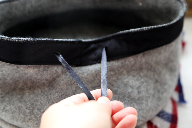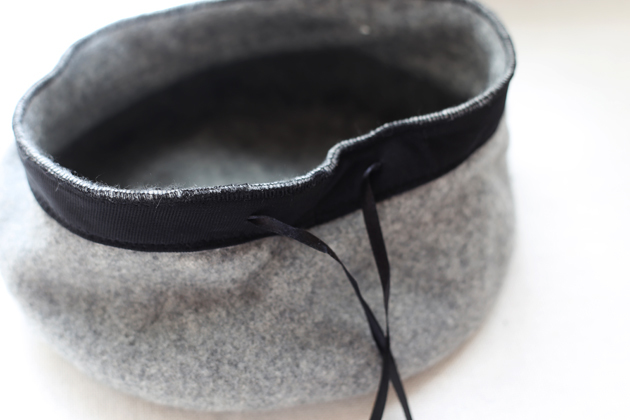 貝蕾帽底部內穿一條細緞帶,便於繫緊在頭上,可稍微調整頭圍