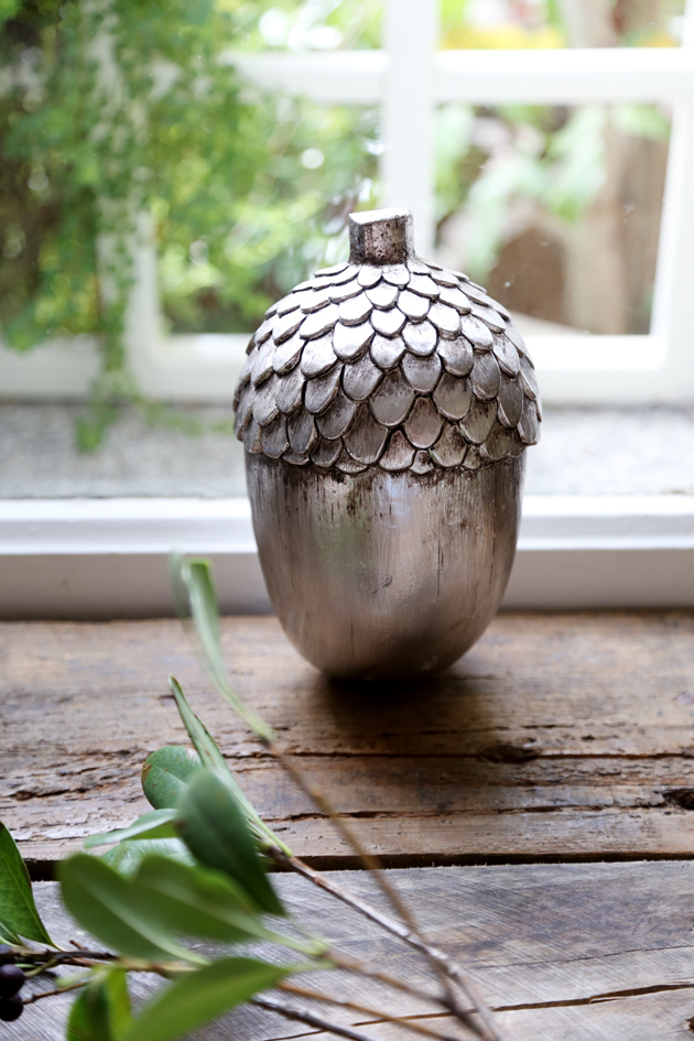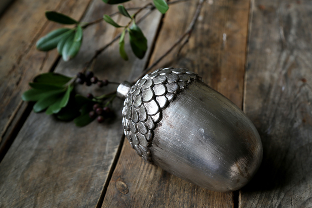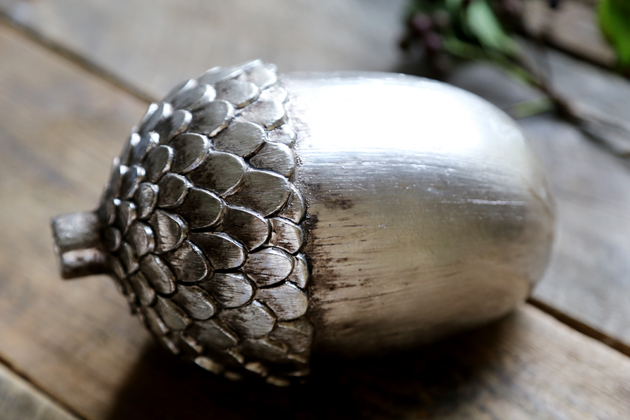 銀色大橡實,質地輕盈,刷上深深淺淺的復古銀色漆,看起來很有木頭的味道