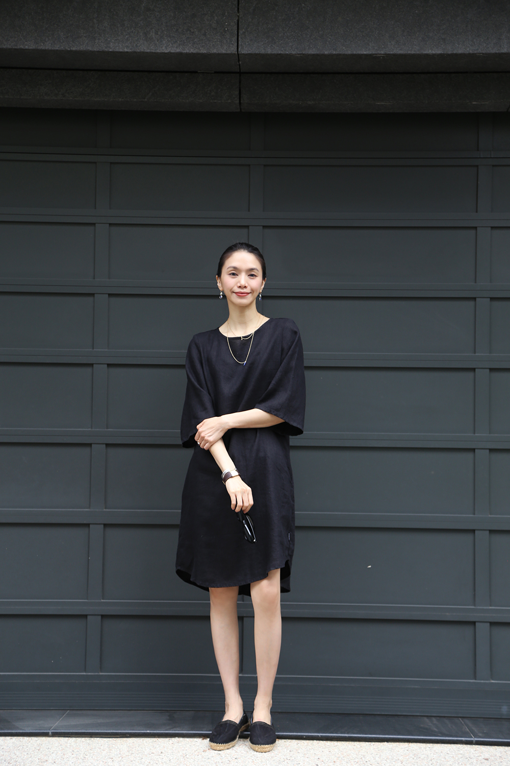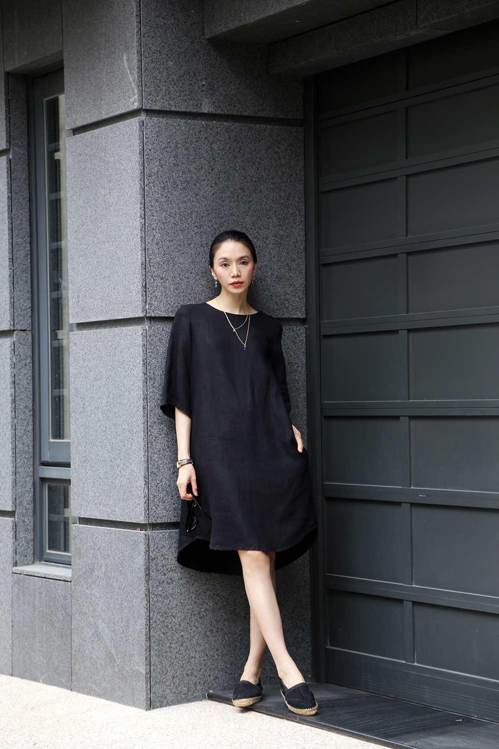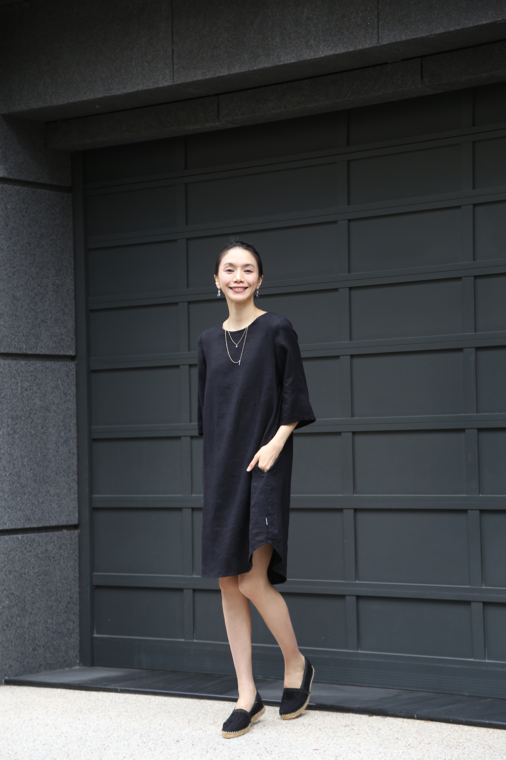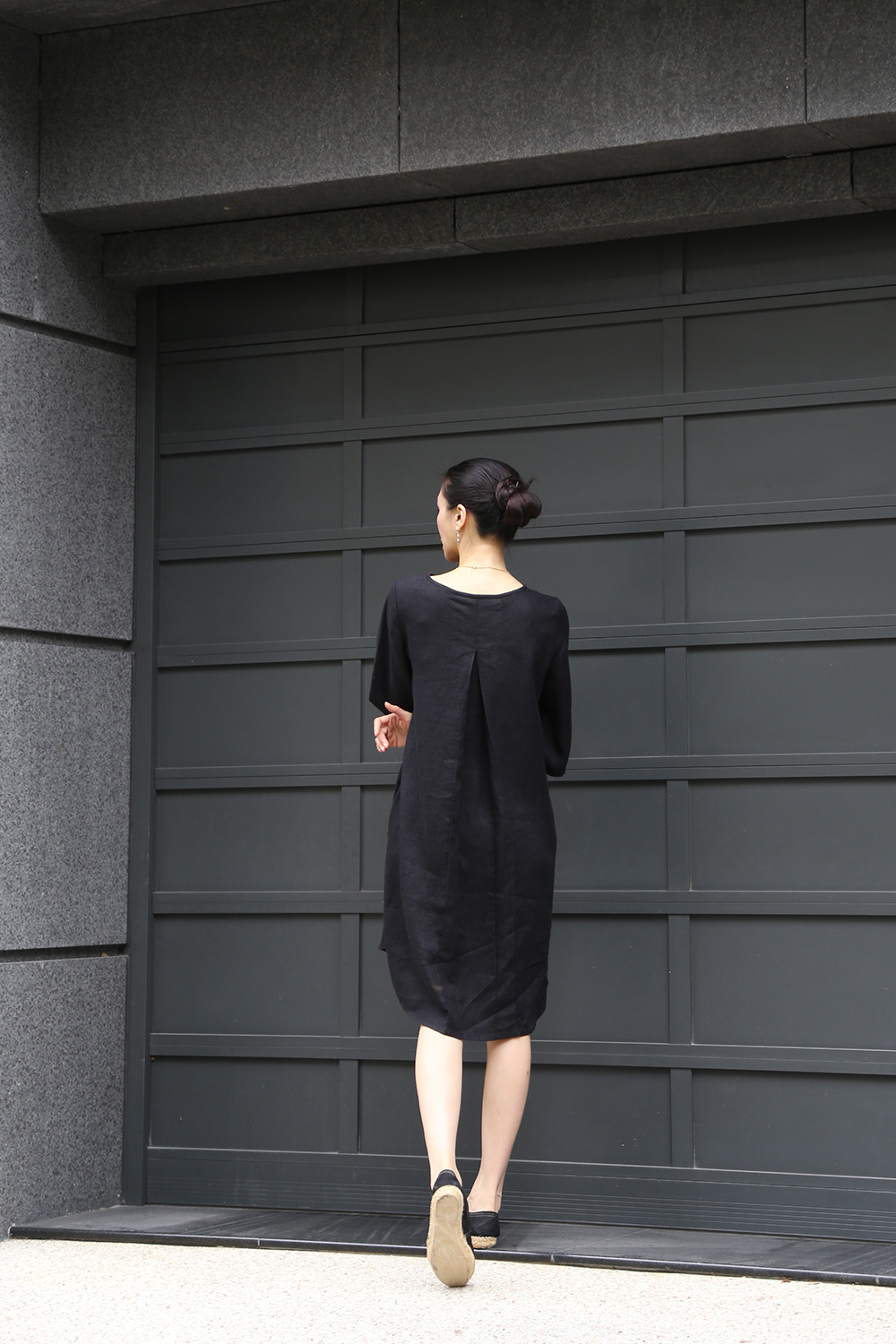 流暢的線條、飄逸的布料以及諸如後褶和兩個口袋等簡約細節