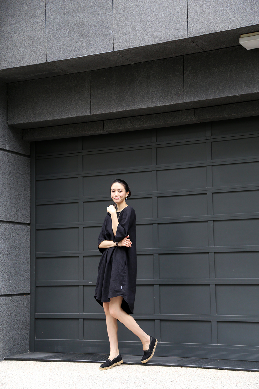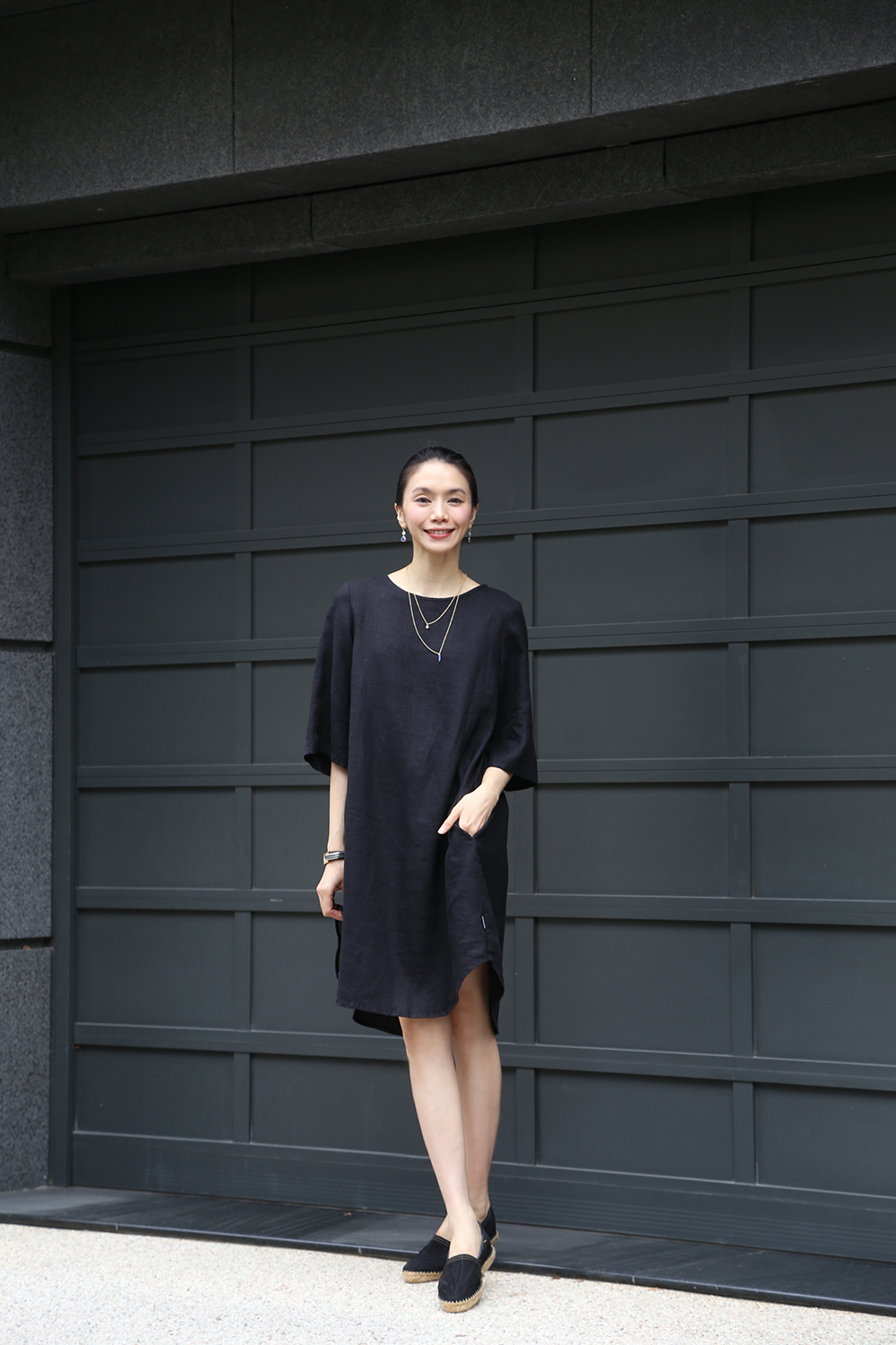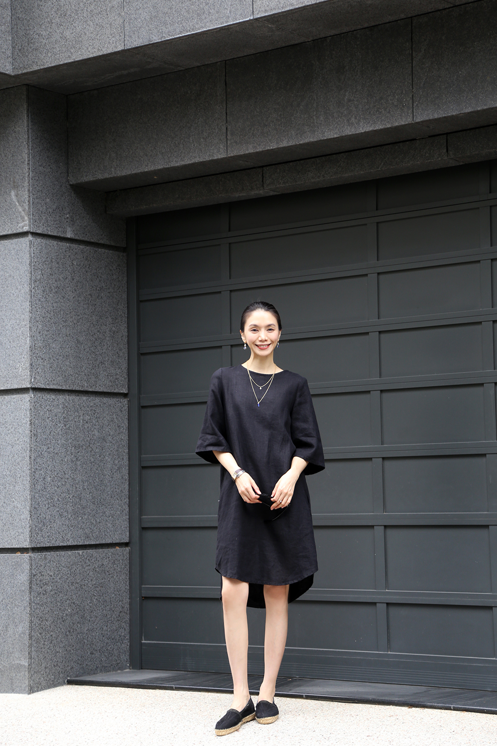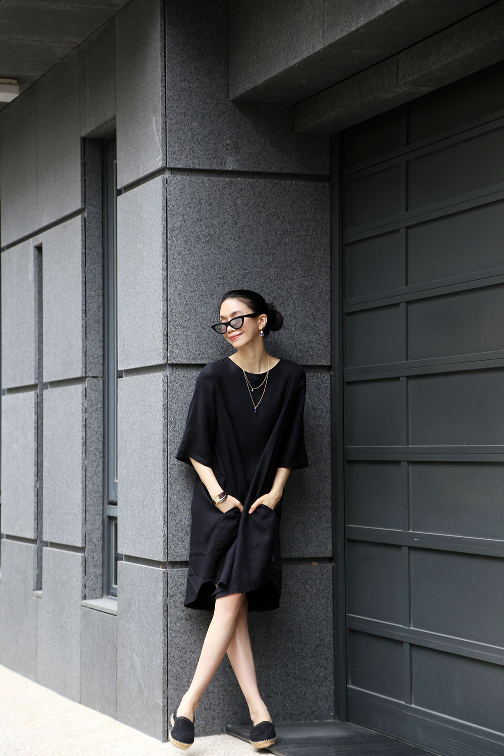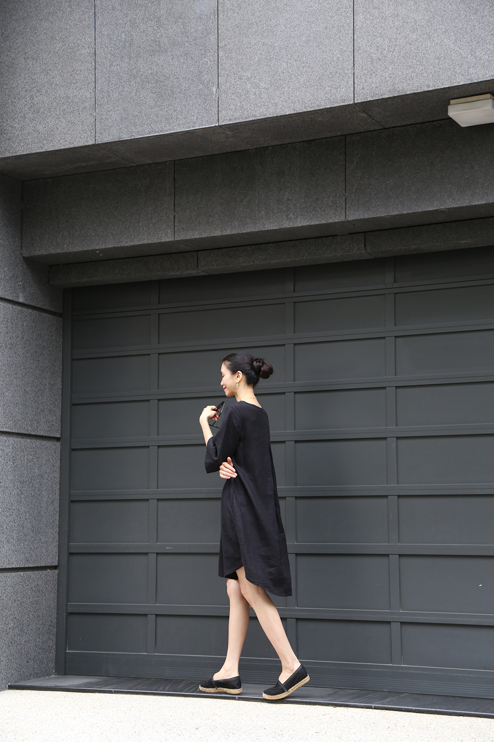 流暢的線條、飄逸的布料以及諸如後褶和兩個口袋等簡約細節