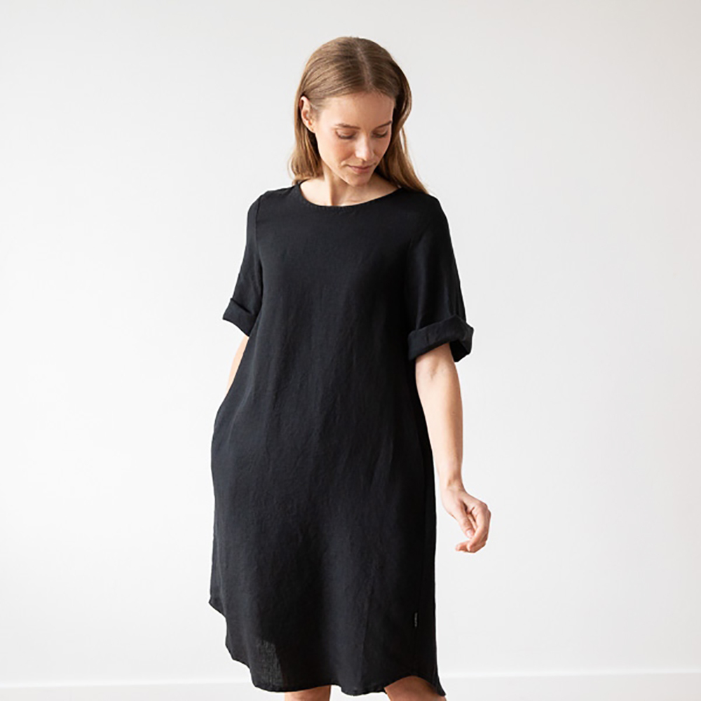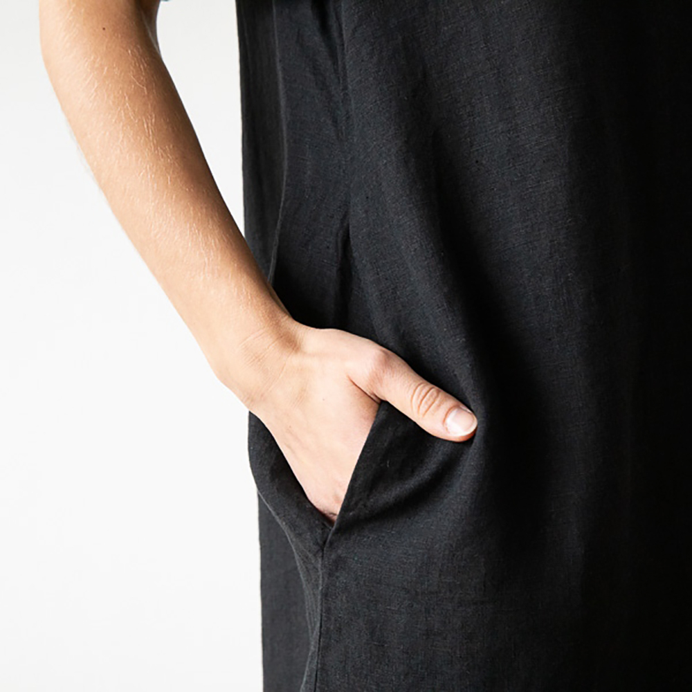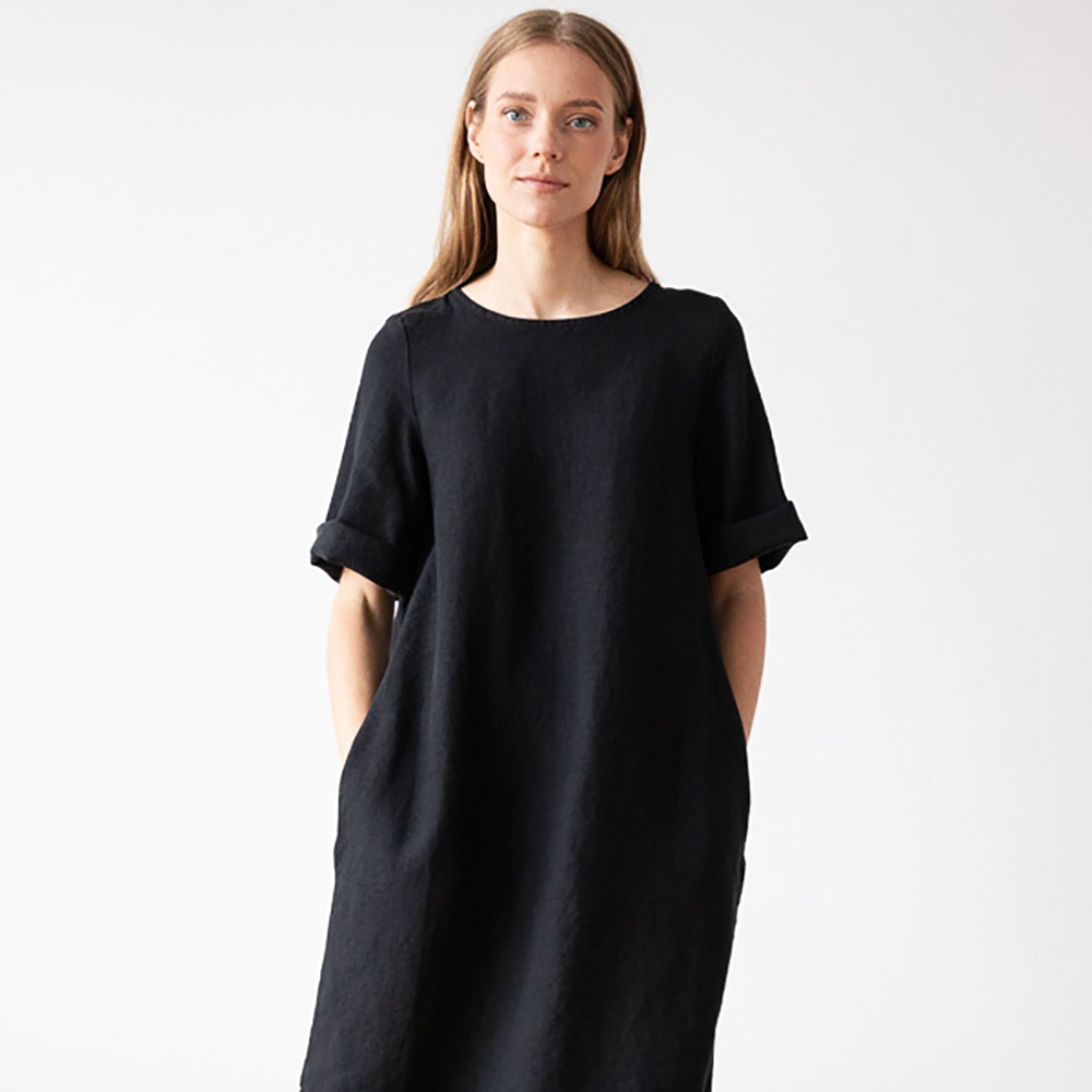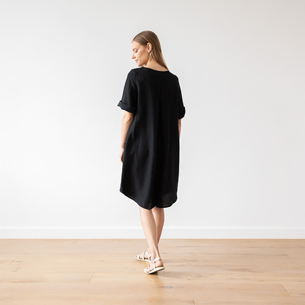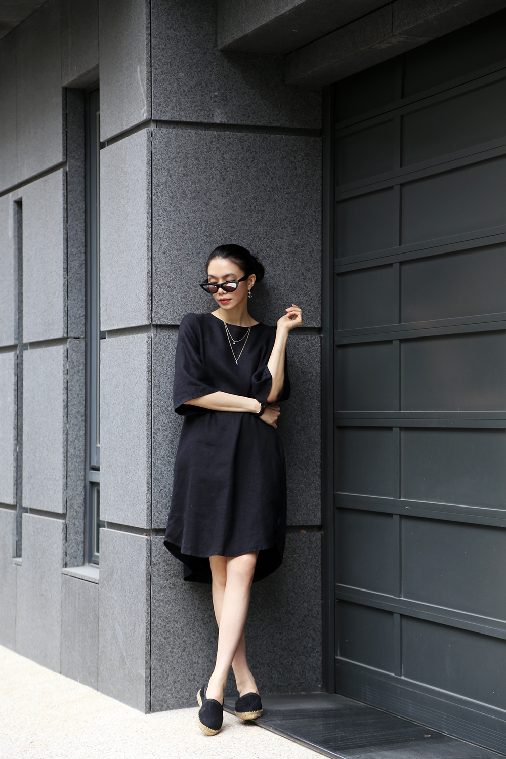流暢的線條、飄逸的布料以及諸如後褶和兩個口袋等簡約細節