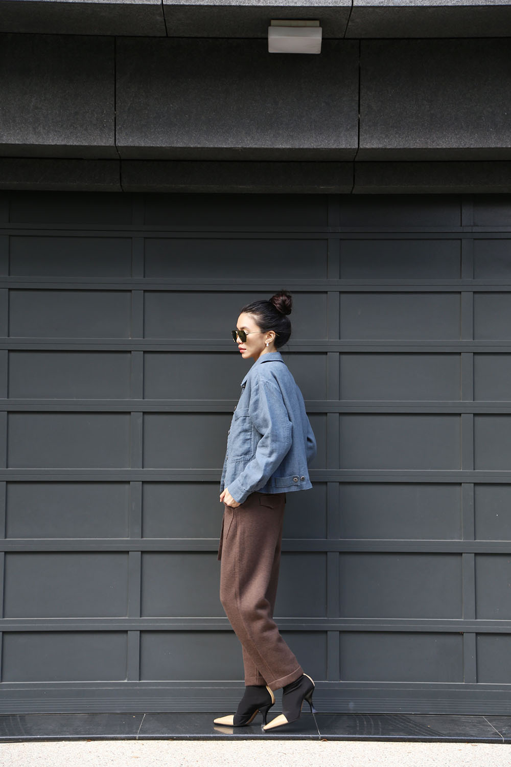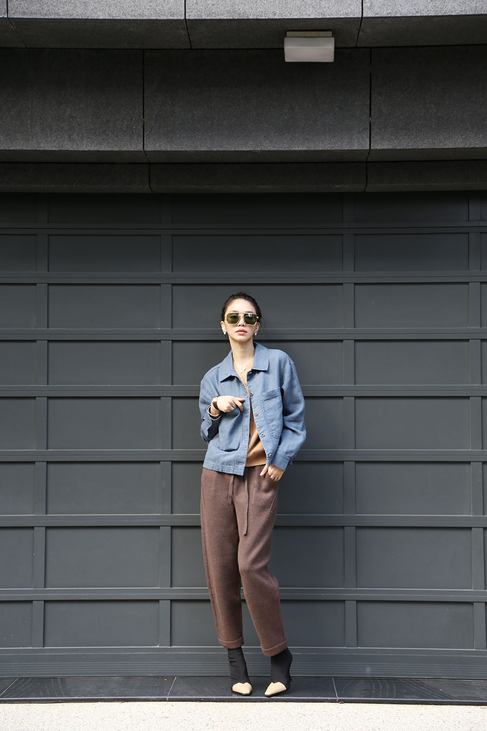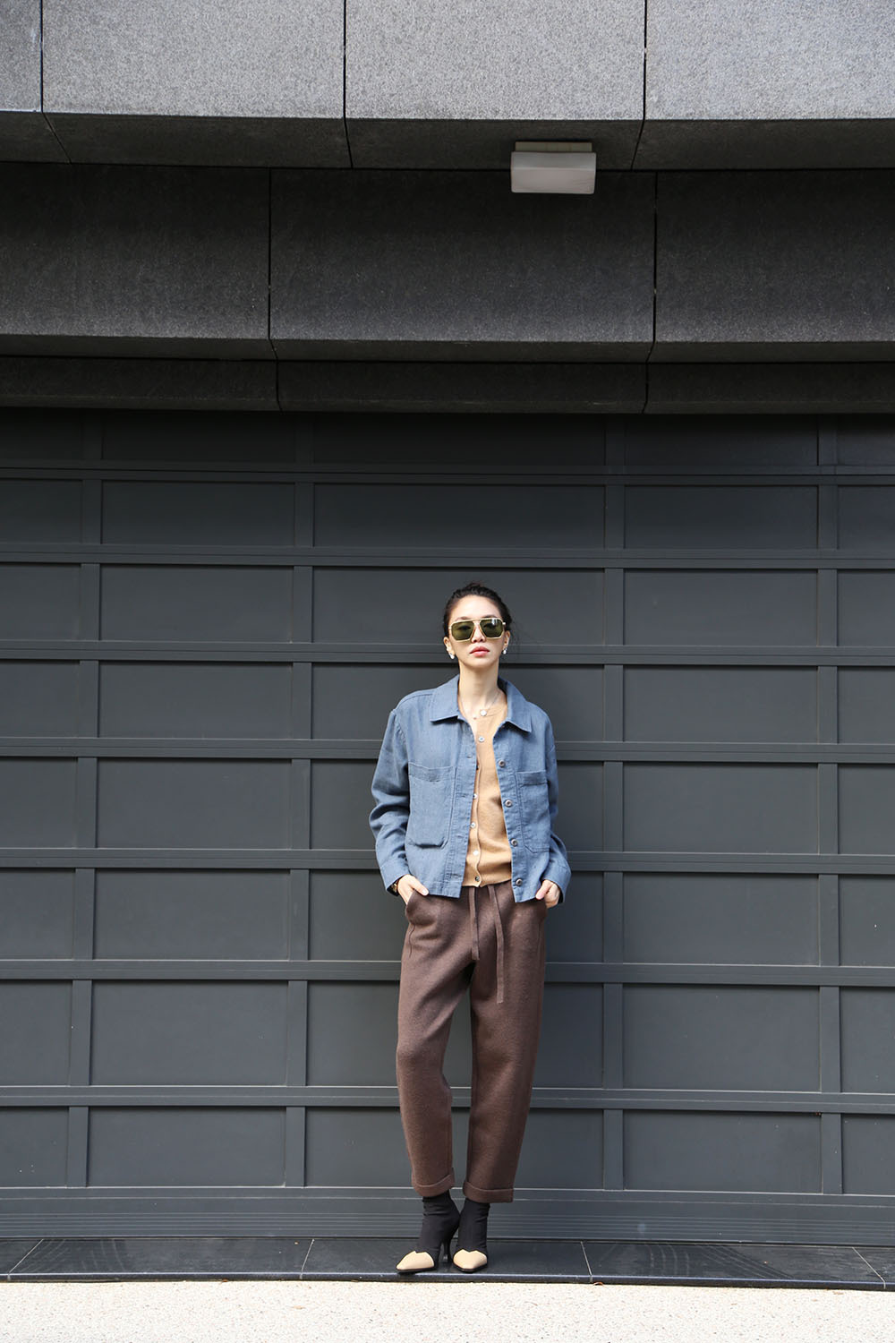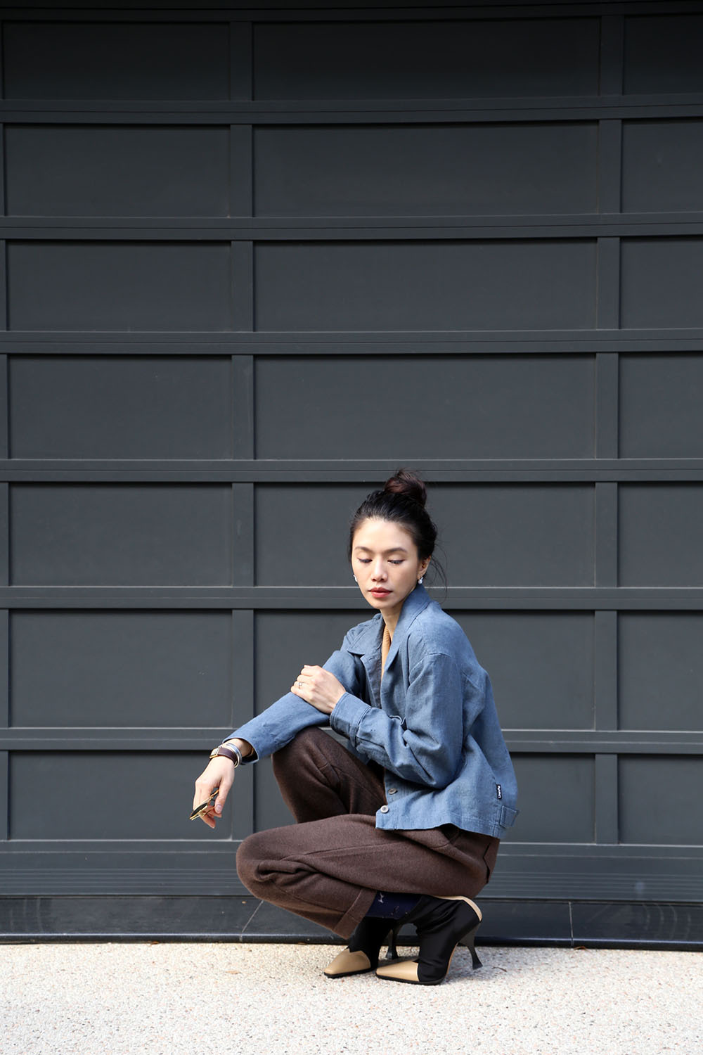 夾克配有寬敞的口袋,背部兩粒紐扣設計更添廓形之美