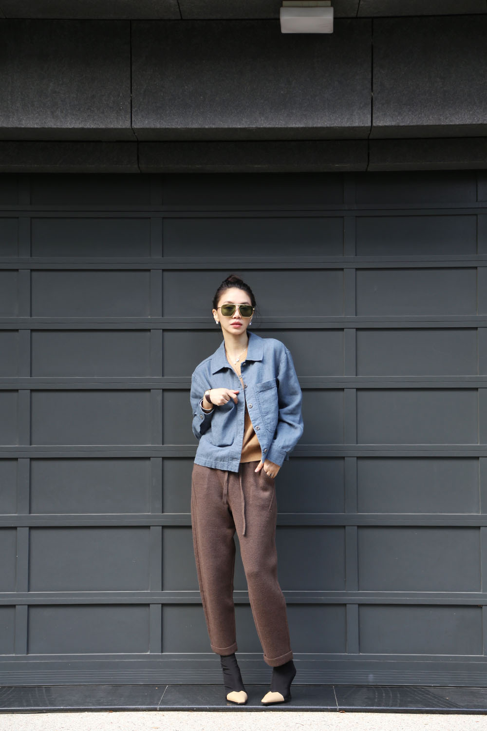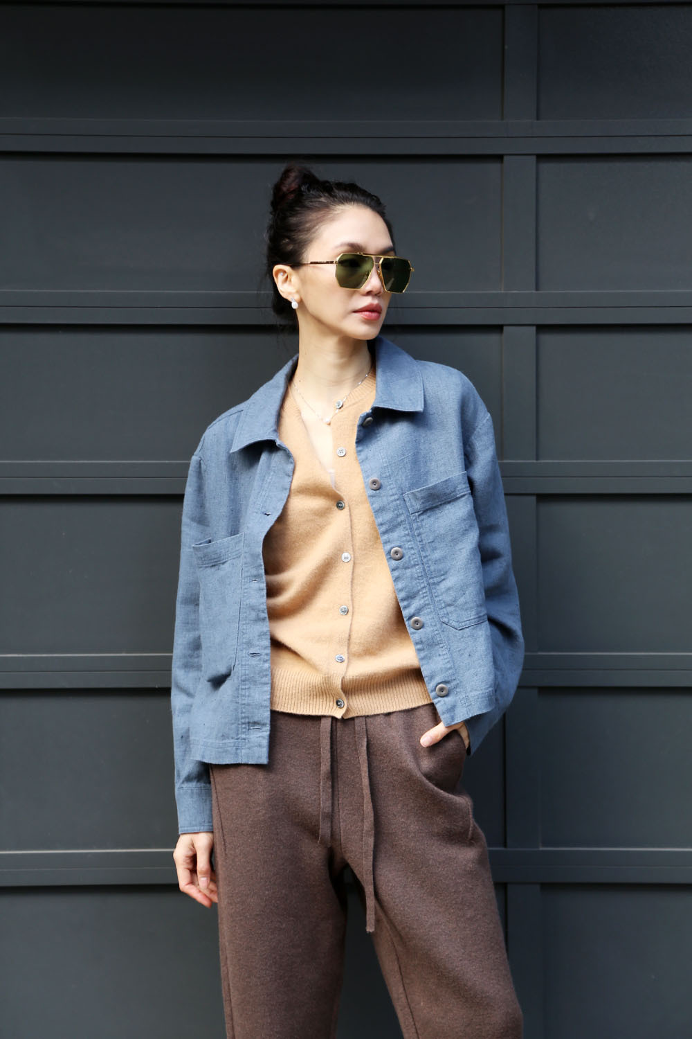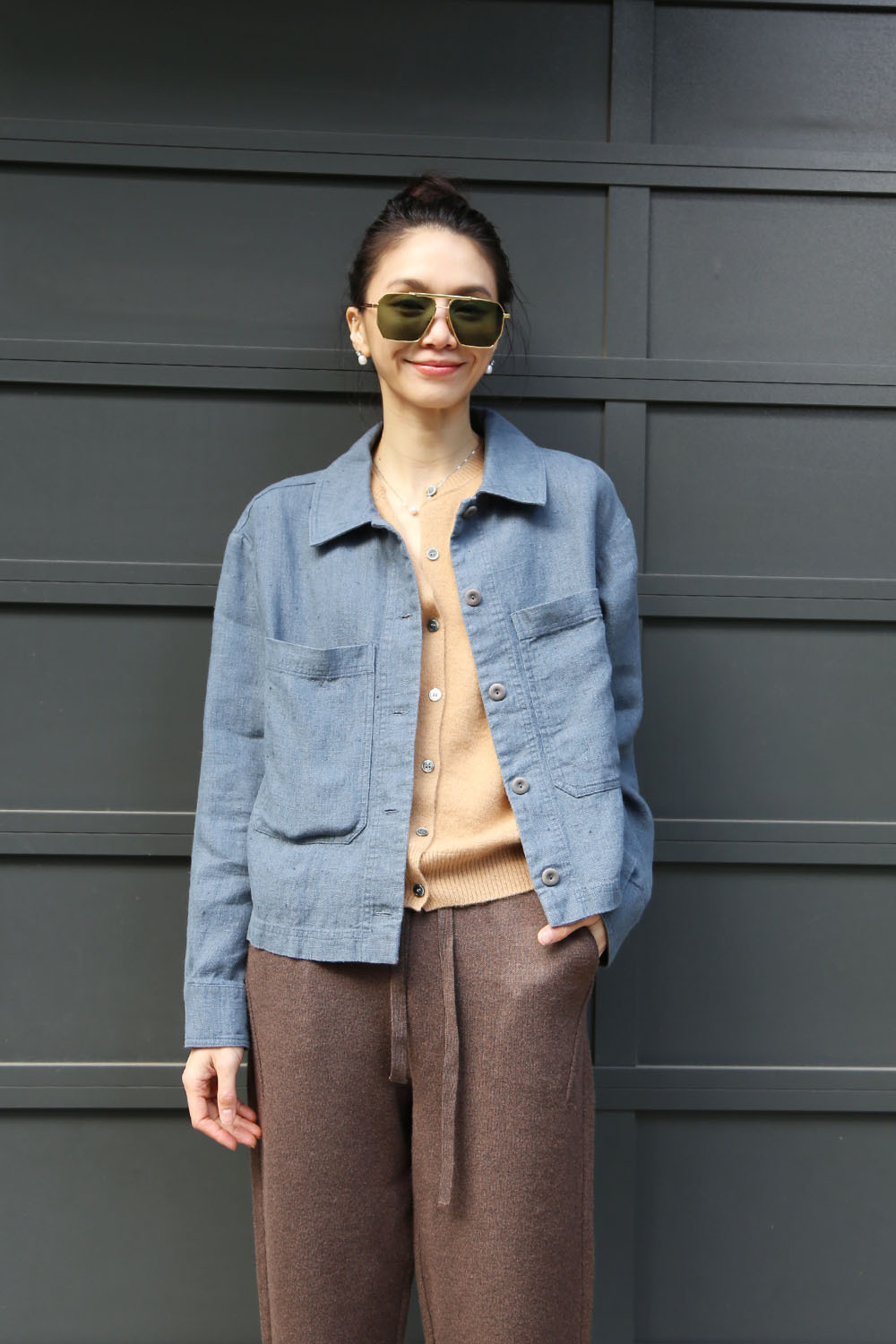 它採用厚實的亞麻麵料,寬鬆的輪廓剪裁