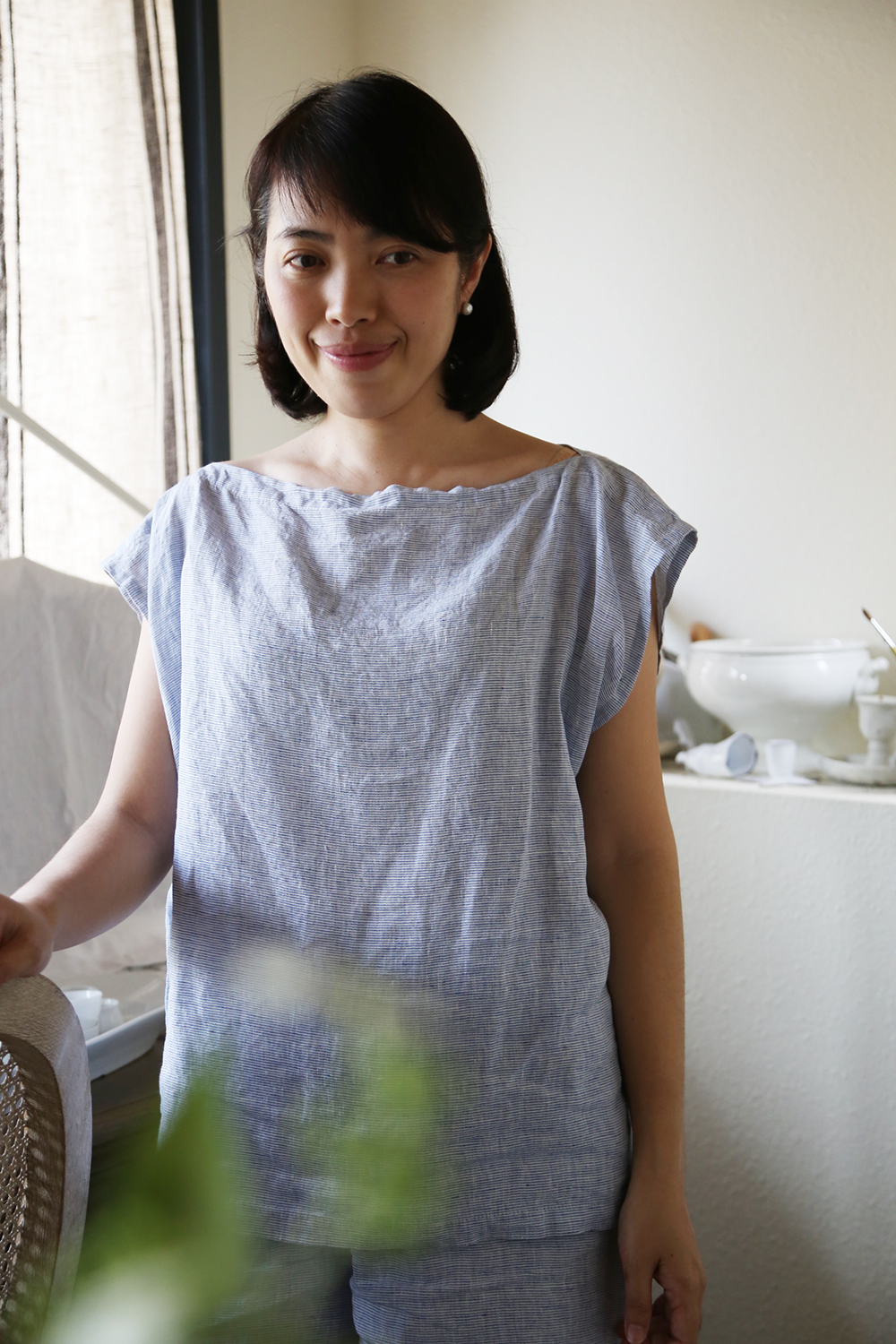迷人的船領和和服短袖使這款亞麻睡衣與眾不同