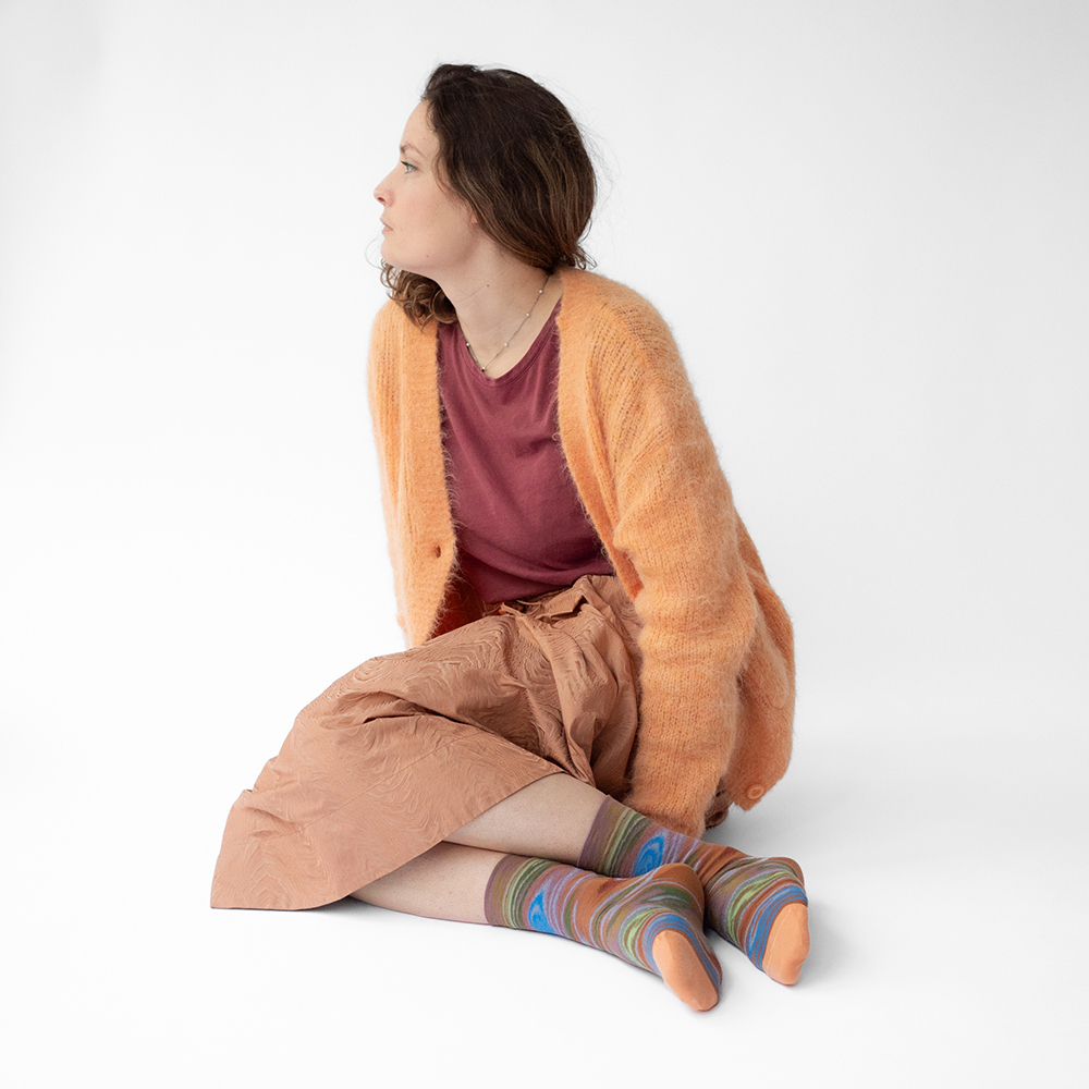在義大利製布紡紗,全程在法國設計以及法國和葡萄牙生產的每一雙襪子。