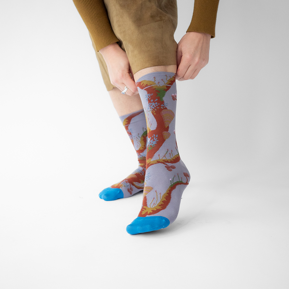 每一雙的襪子都極具一個完整的設計故事,圖騰鮮豔多變細膩,非常百搭,穿上皮鞋、短靴立即有型,
