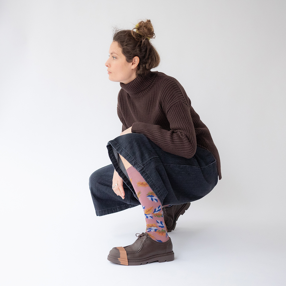 在義大利製布紡紗,全程在法國設計以及法國和葡萄牙生產的每一雙襪子。