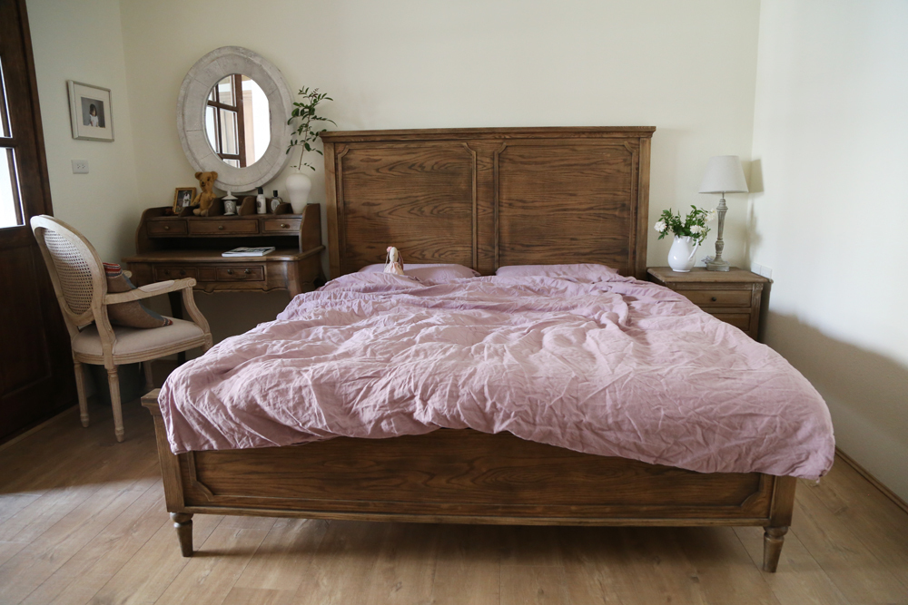 我們採用的材質為法國諾曼地水洗亞麻,透氣親膚的材質最適合悶熱黏膩的台灣