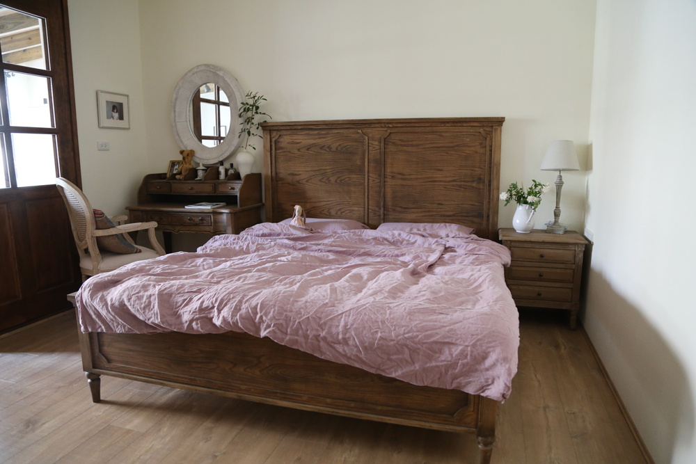 *亞麻撲實的凹凸感與自然皺摺,這是她美麗的特性,天然材質洗滌後會有自然的褪色感,或愈用愈柔軟親膚。