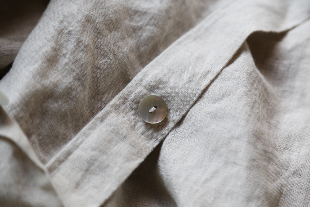 亞麻原料自法國諾曼第,於立陶宛使用歐洲傳統機器紡織製作,最後於中國車縫製作