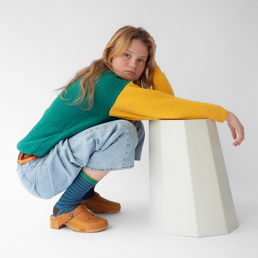 在義大利製布紡紗,全程在法國設計以及法國和葡萄牙生產的每一雙襪子。