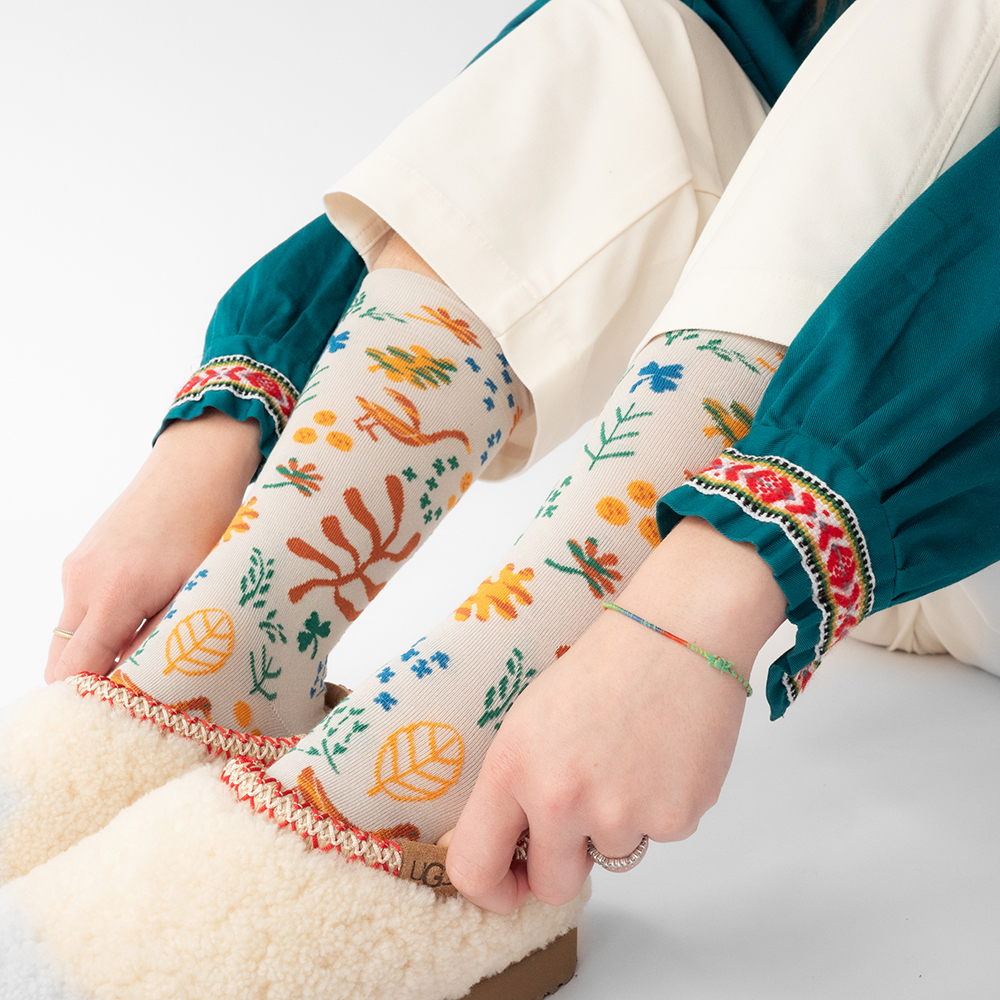 每一雙的襪子都極具一個完整的設計故事,圖騰鮮豔多變細膩,非常百搭,穿上皮鞋、短靴立即有型,