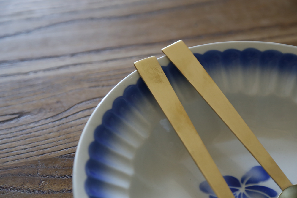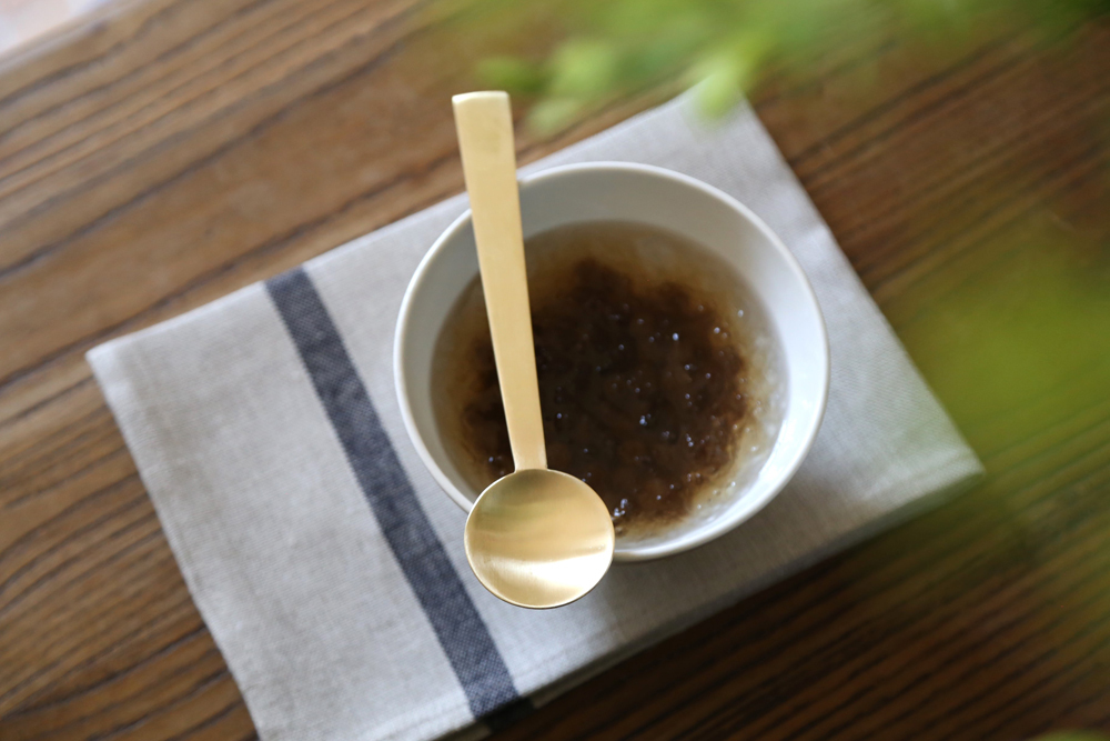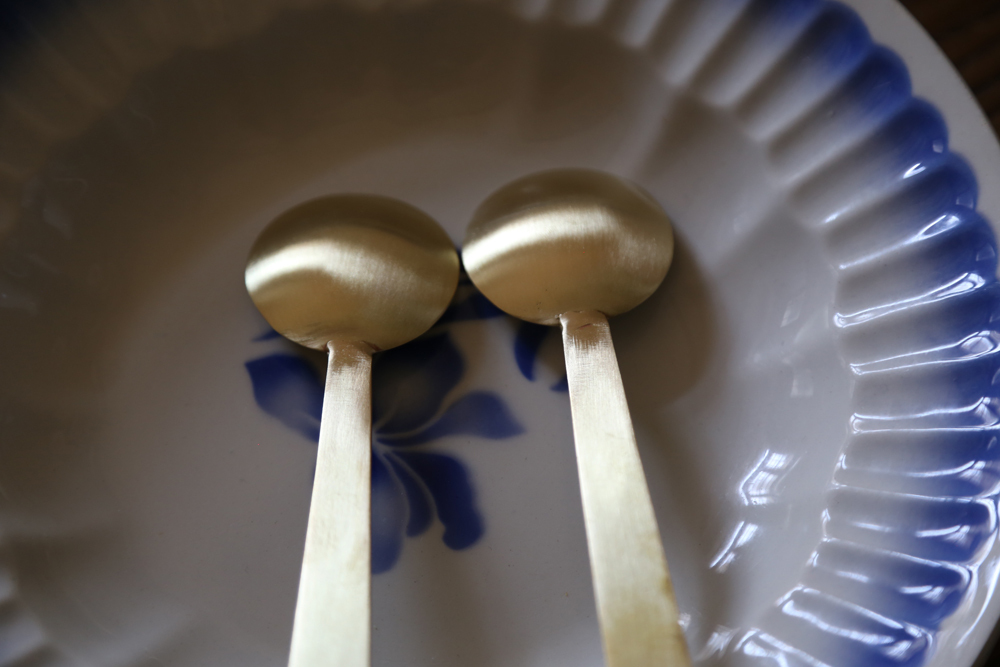 ※去除黃銅黑斑:將餐具泡入倒滿食用醋的容器內,需整個覆蓋浸泡,建議浸泡時間約2~5分鐘,邊浸泡邊注意黃銅表面黑斑等除去的情況