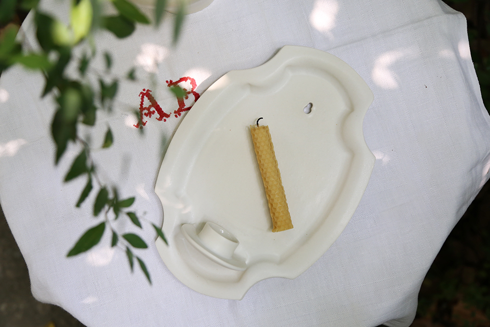 拿到出窯的壁掛燭台作品,迫不及待為它點起蠟燭