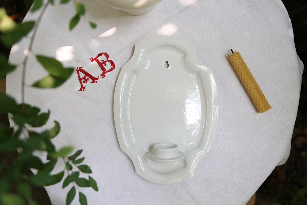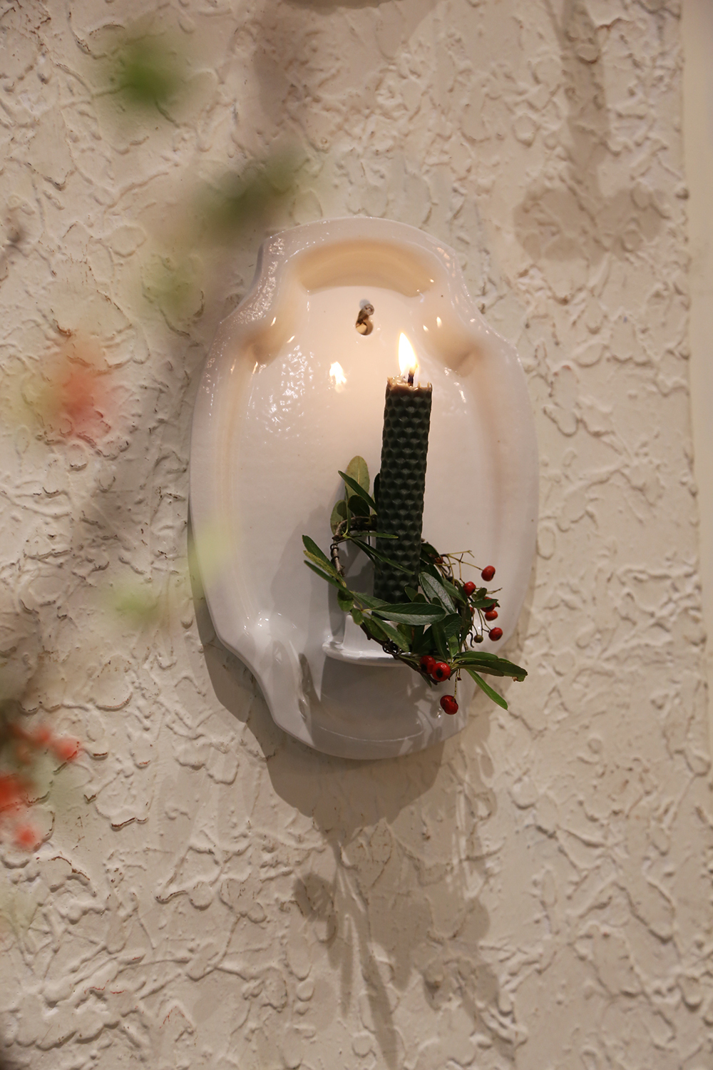 拿到出窯的壁掛燭台作品,迫不及待為它點起蠟燭