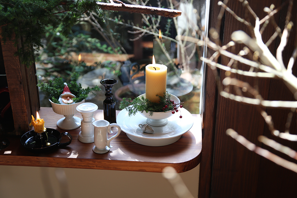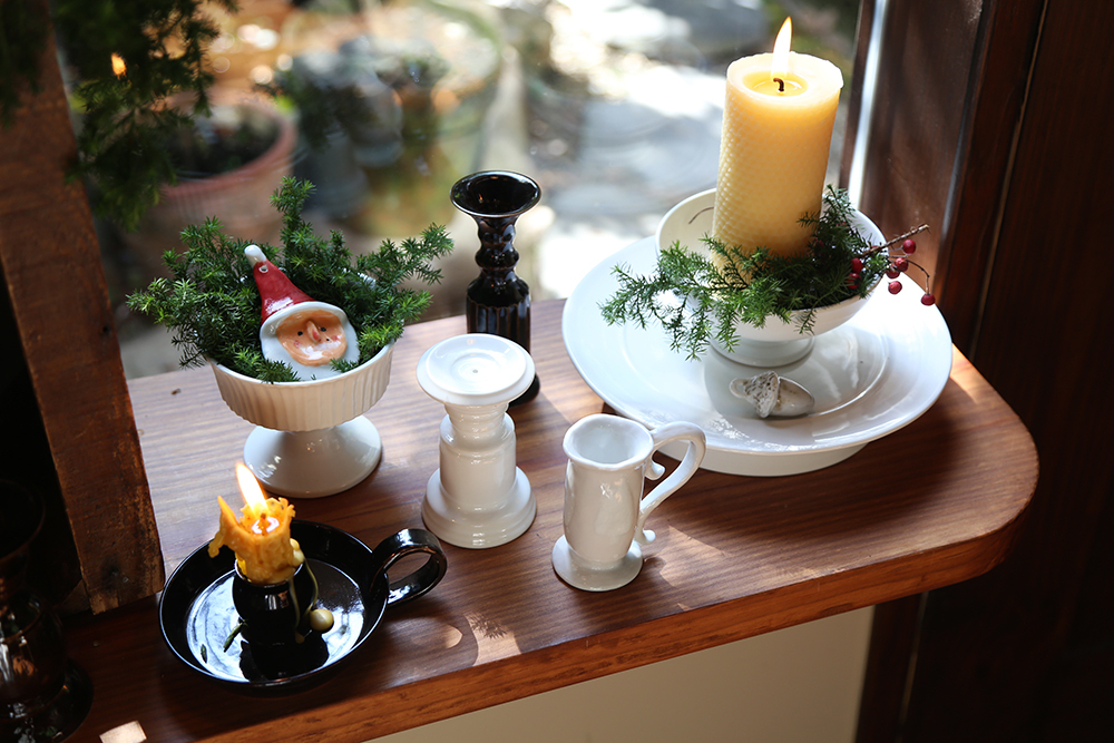 在餐桌上點起蠟燭,更增添餐桌上的氣氛,也很有溫暖的節慶感