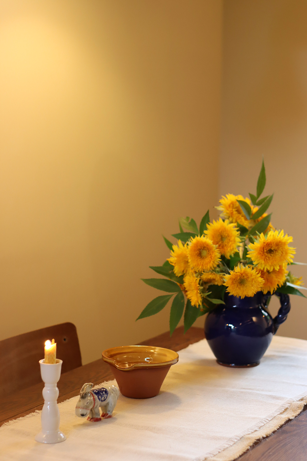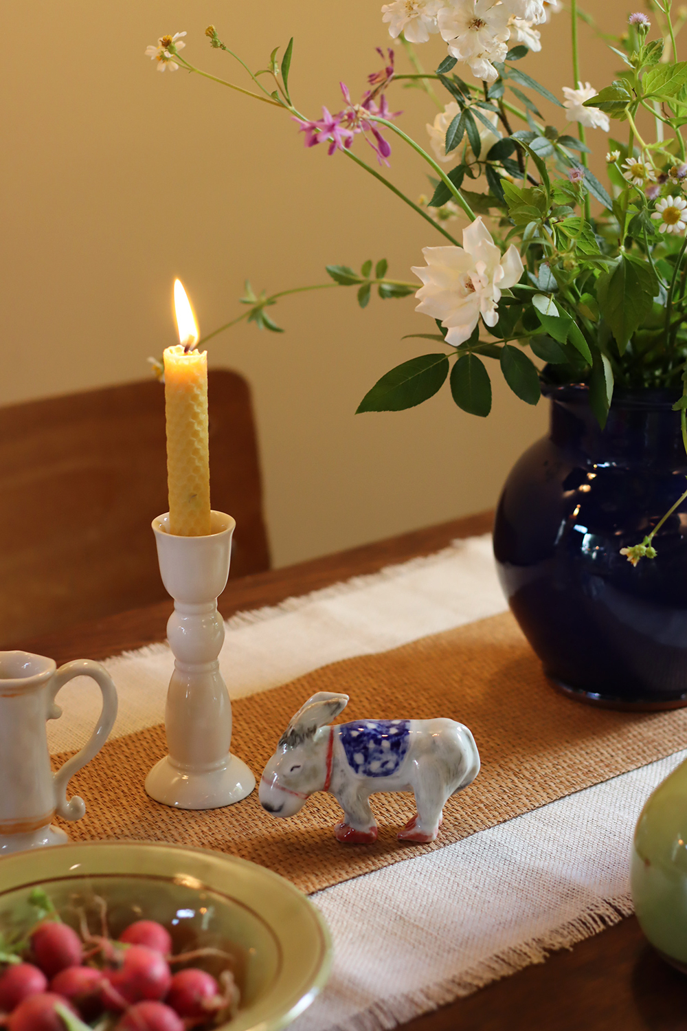 在餐桌上點起蠟燭,更增添餐桌上的氣氛,也很有溫暖的節慶感