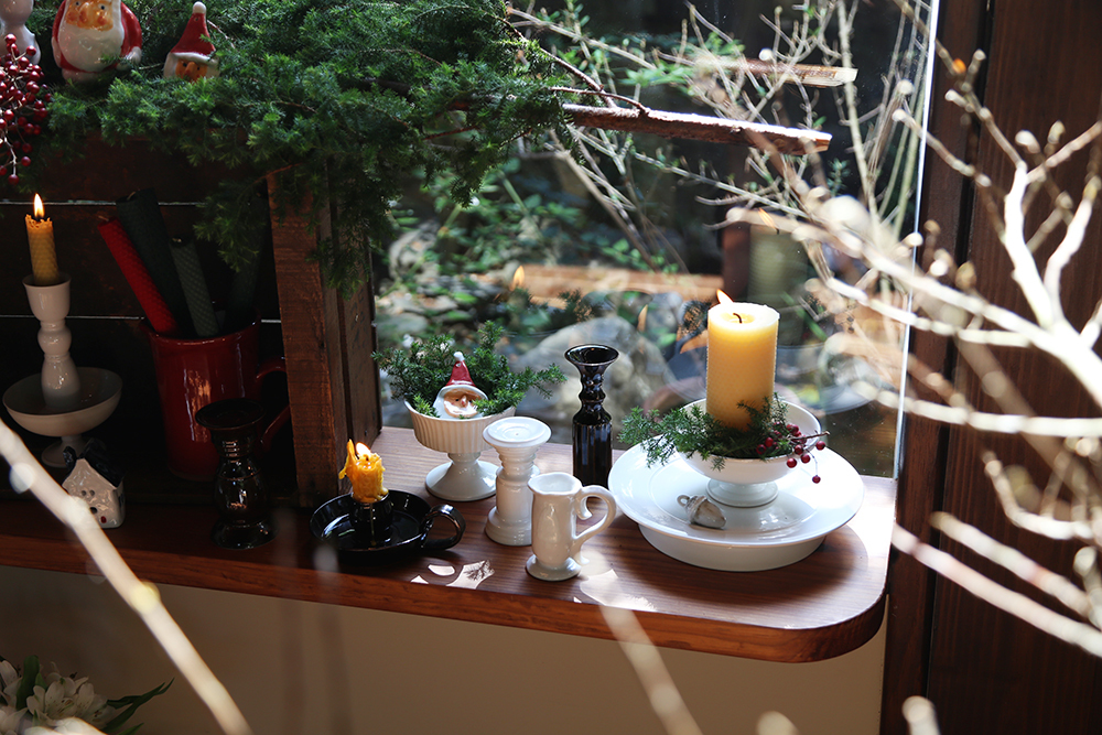 在餐桌上點起蠟燭,更增添餐桌上的氣氛,也很有溫暖的節慶感