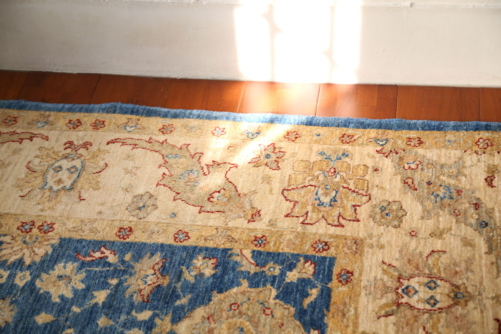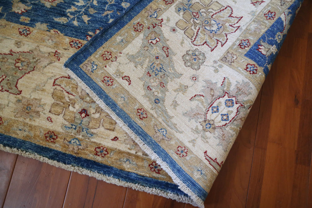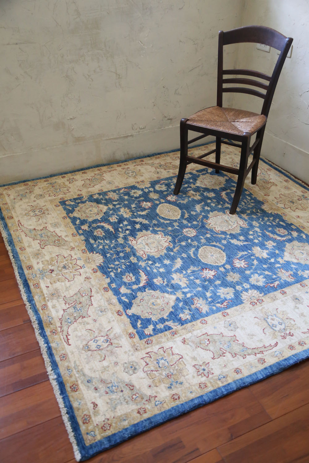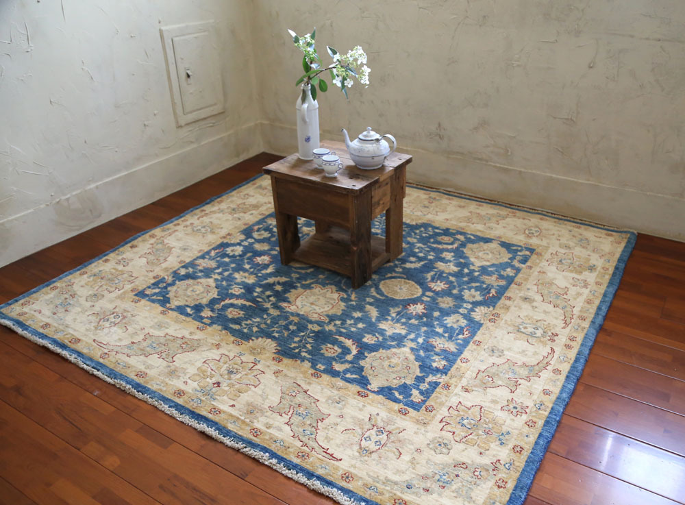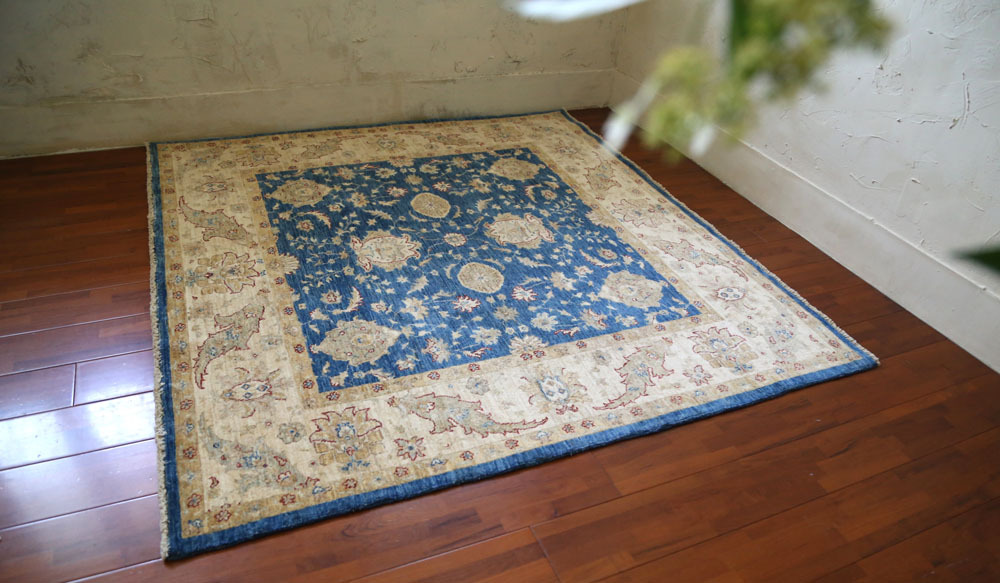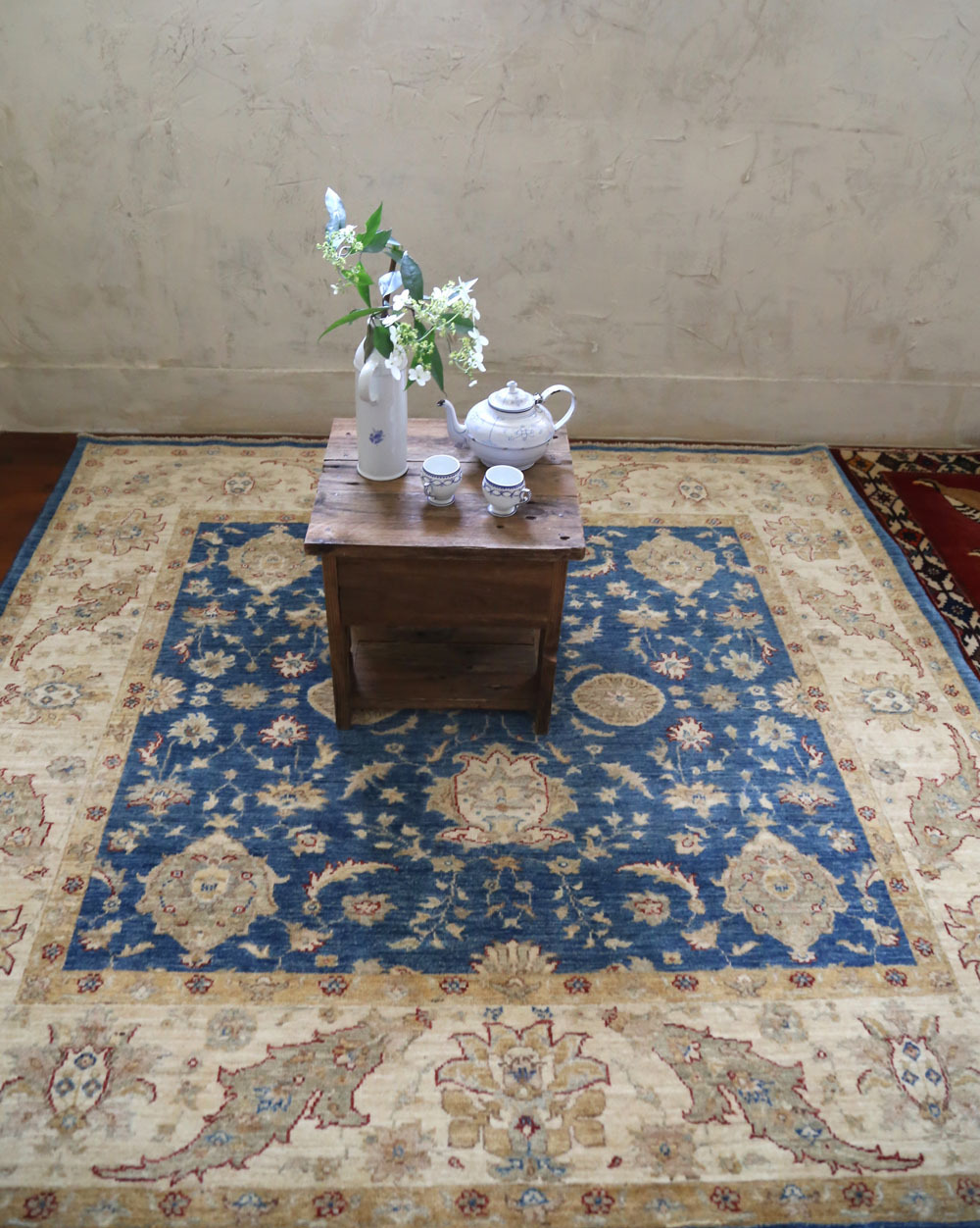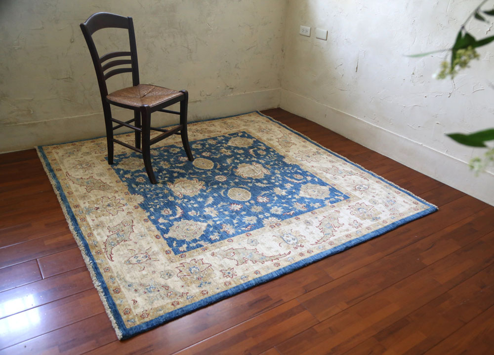 採用優質羊毛手工紡紗成線,在巴基斯坦手工打結。使用的處理方法產生了華麗的現代和老式銅綠,顏色柔和。