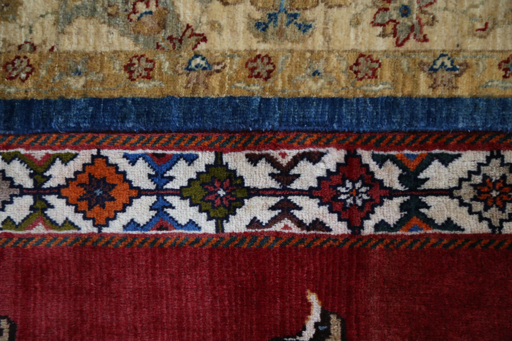 採用優質羊毛手工紡紗成線,在伊朗手工打結,以其高品質和堅固的絨毛為名,使用天然染料給羊毛上色,顏色柔和。