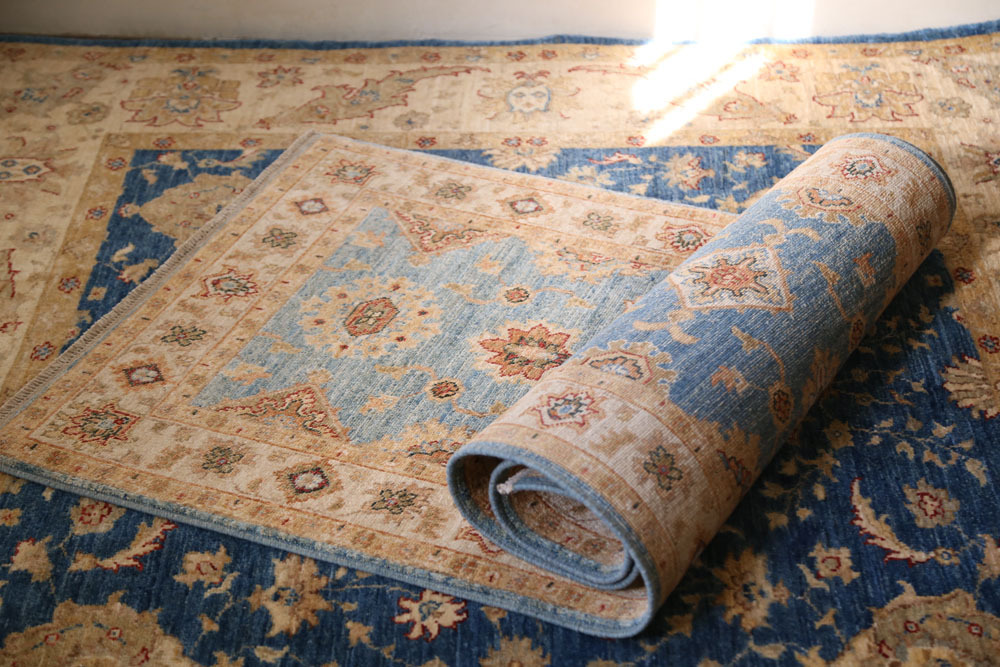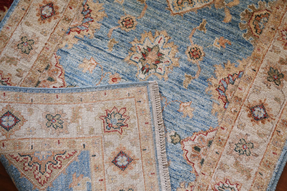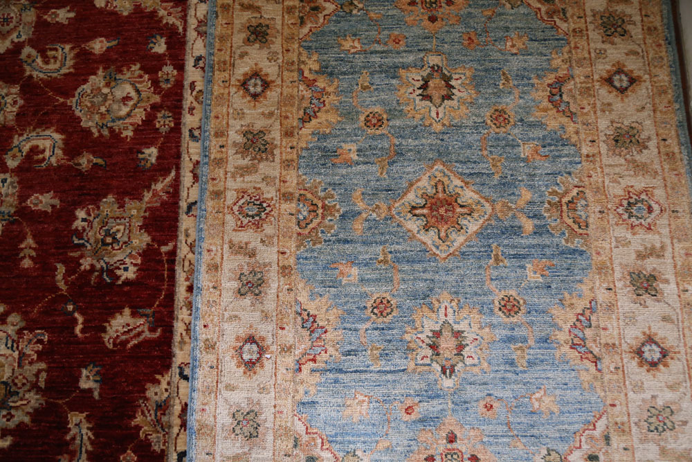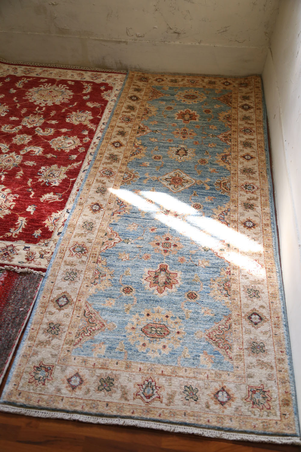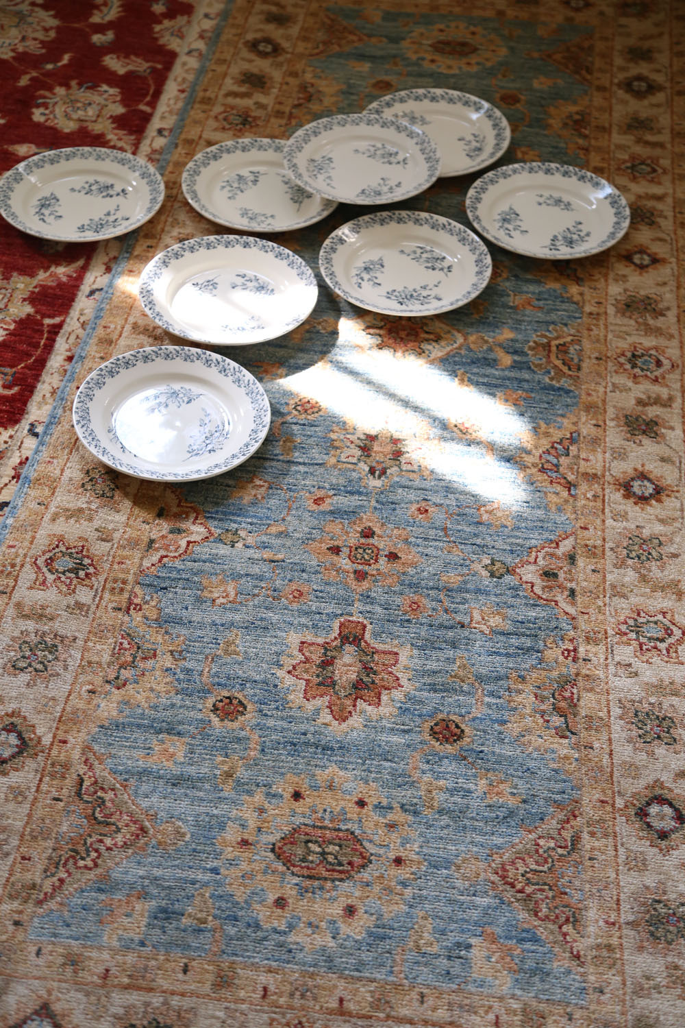 採用優質羊毛手工紡紗成線,在巴基斯坦手工打結。使用的處理方法產生了華麗的現代和老式銅綠,顏色柔和。