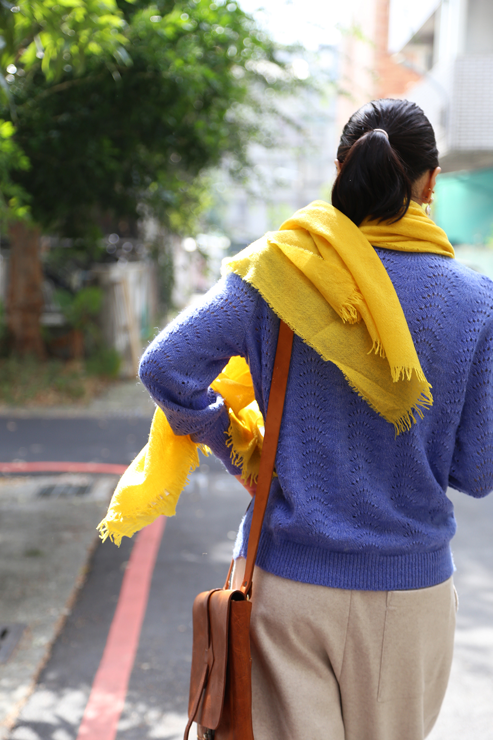 1. 盡量減少與硬物的磨擦,配戴時請留意易勾紗的飾品,讓圍巾有呼吸的空間,圍巾可交替配戴。