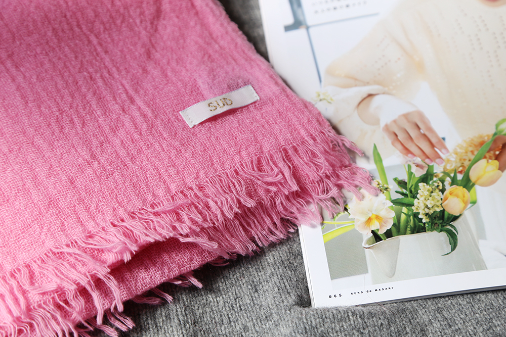 1. 盡量減少與硬物的磨擦,配戴時請留意易勾紗的飾品,讓圍巾有呼吸的空間,圍巾可交替配戴。