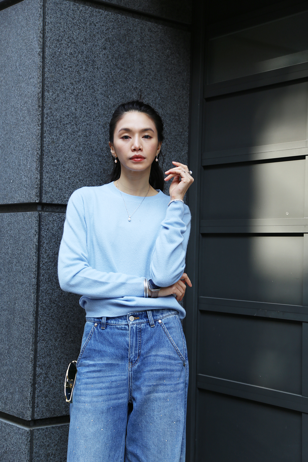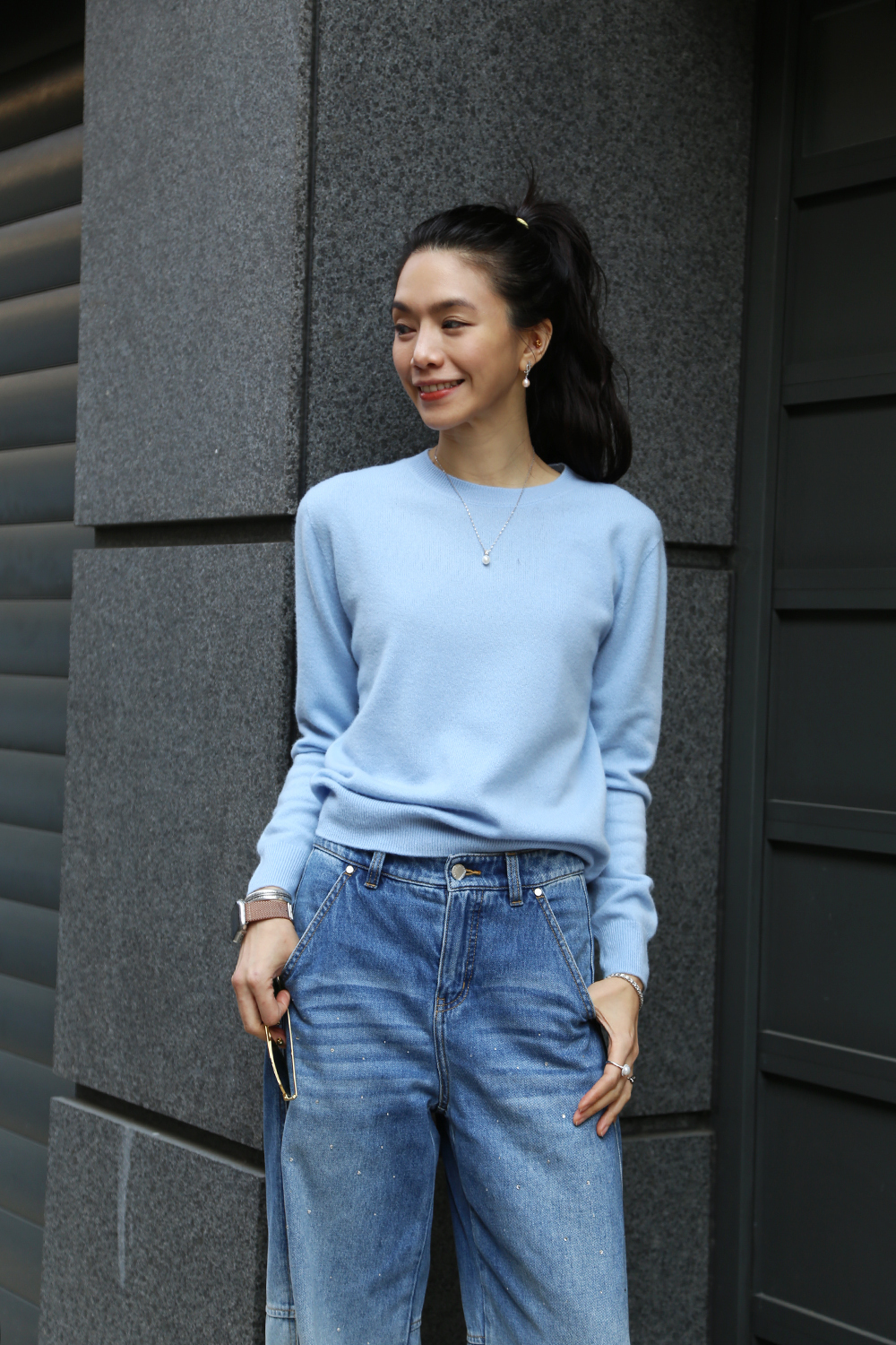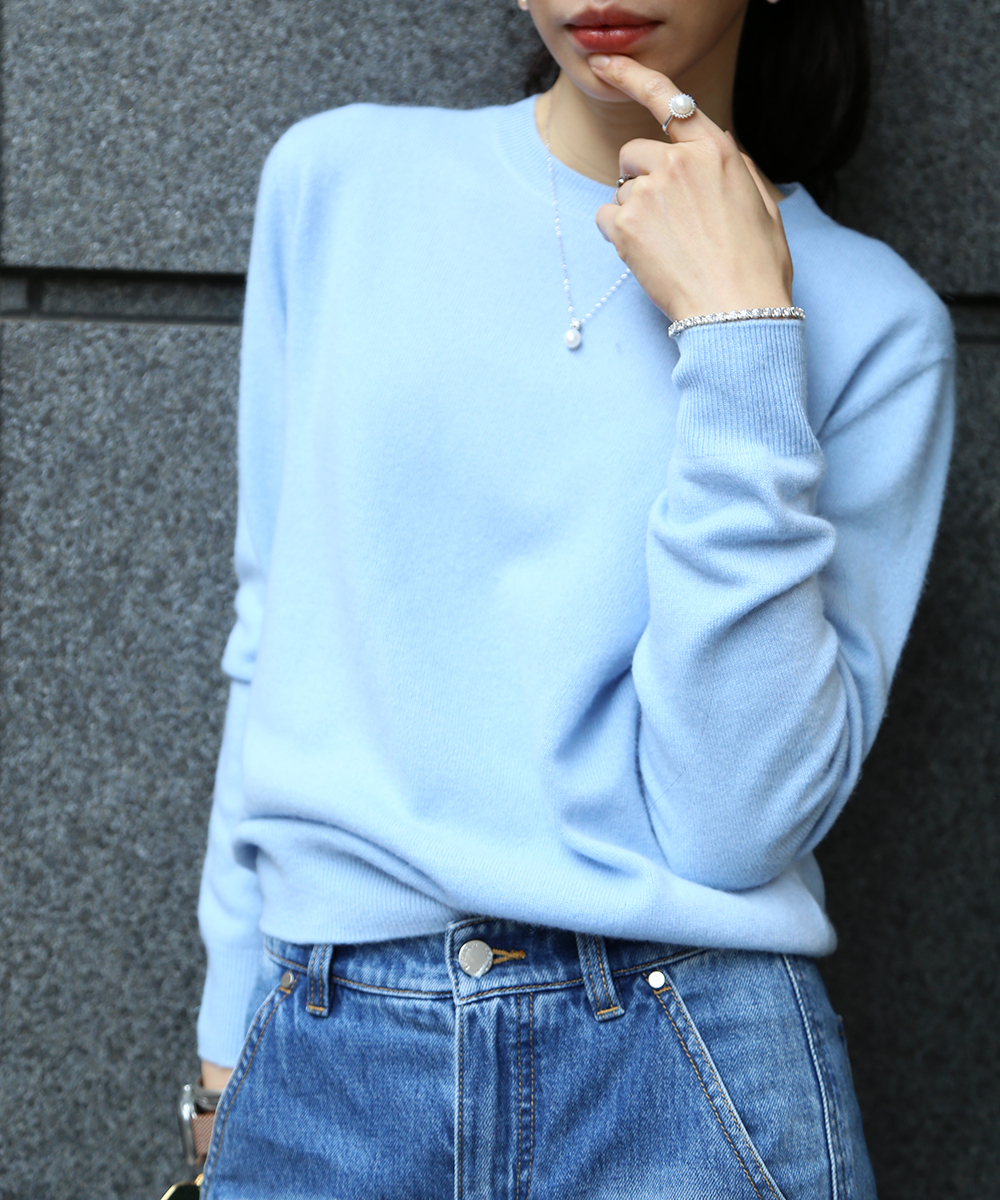 cashmere圓領毛衣-雲藍色
