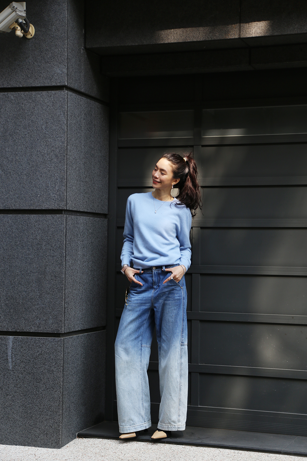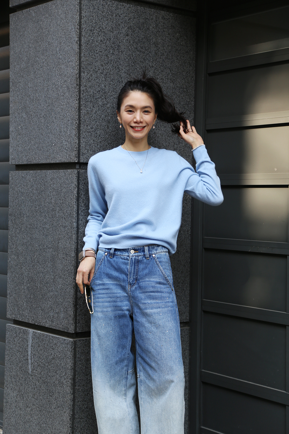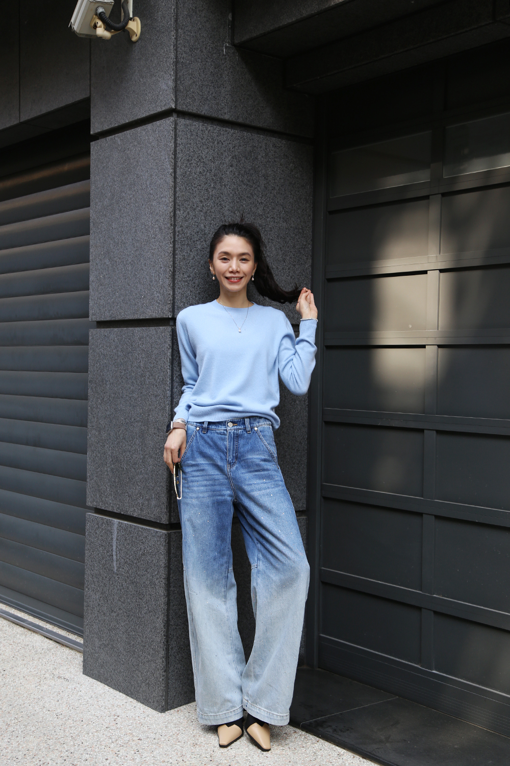 cashmere圓領毛衣-雲藍色