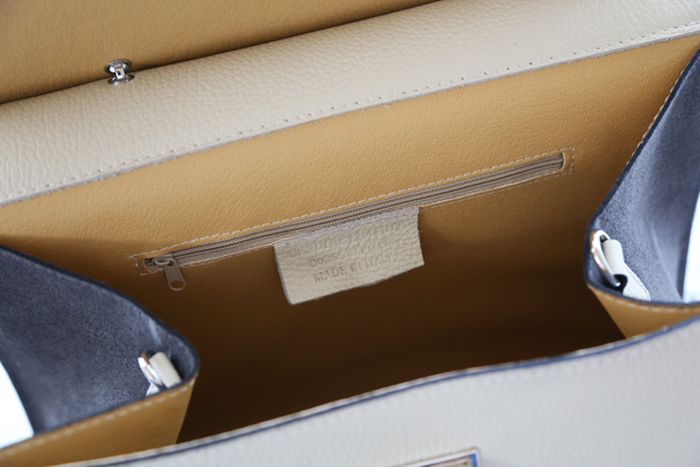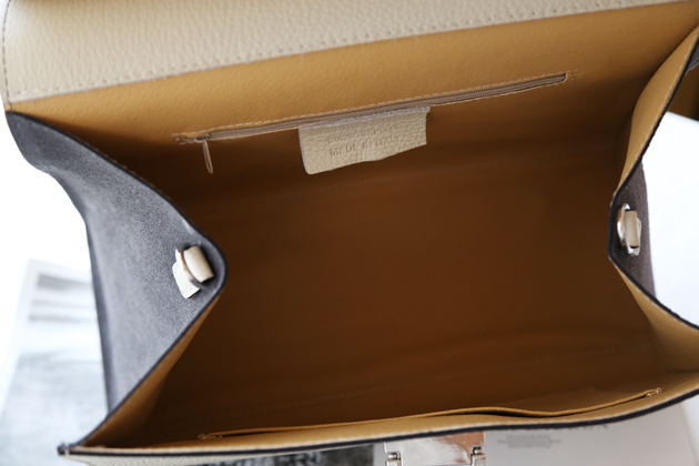 打開包包後芥未黃的內裏配色是視覺上驚喜