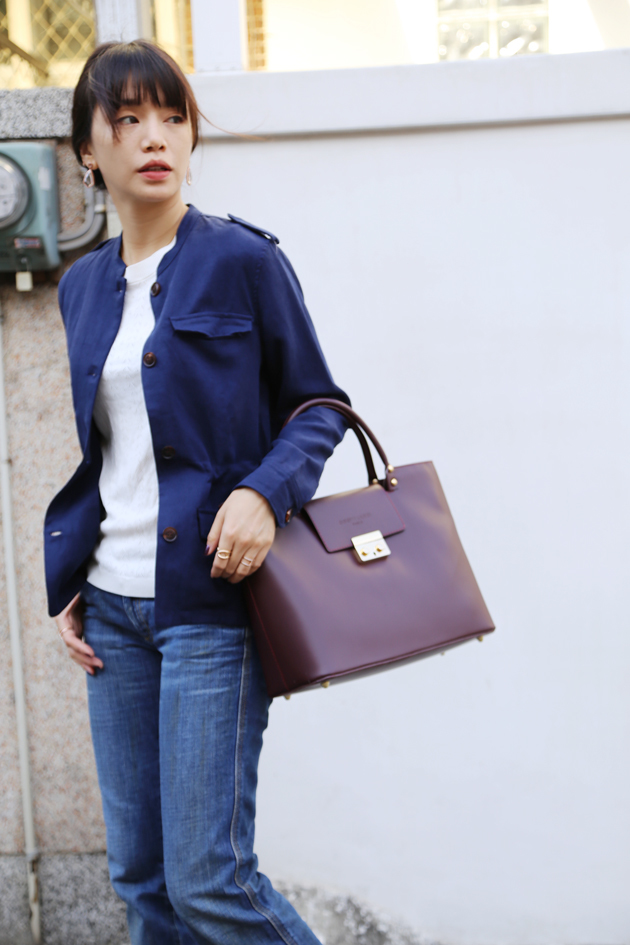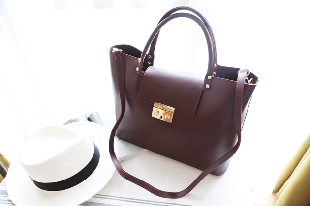 前年前往法國出差受邀Misha家族聚會,她的小姑Sophie小姐,在客廳的掛衣架上隨興掛著一只酒紅色的側肩皮革包,