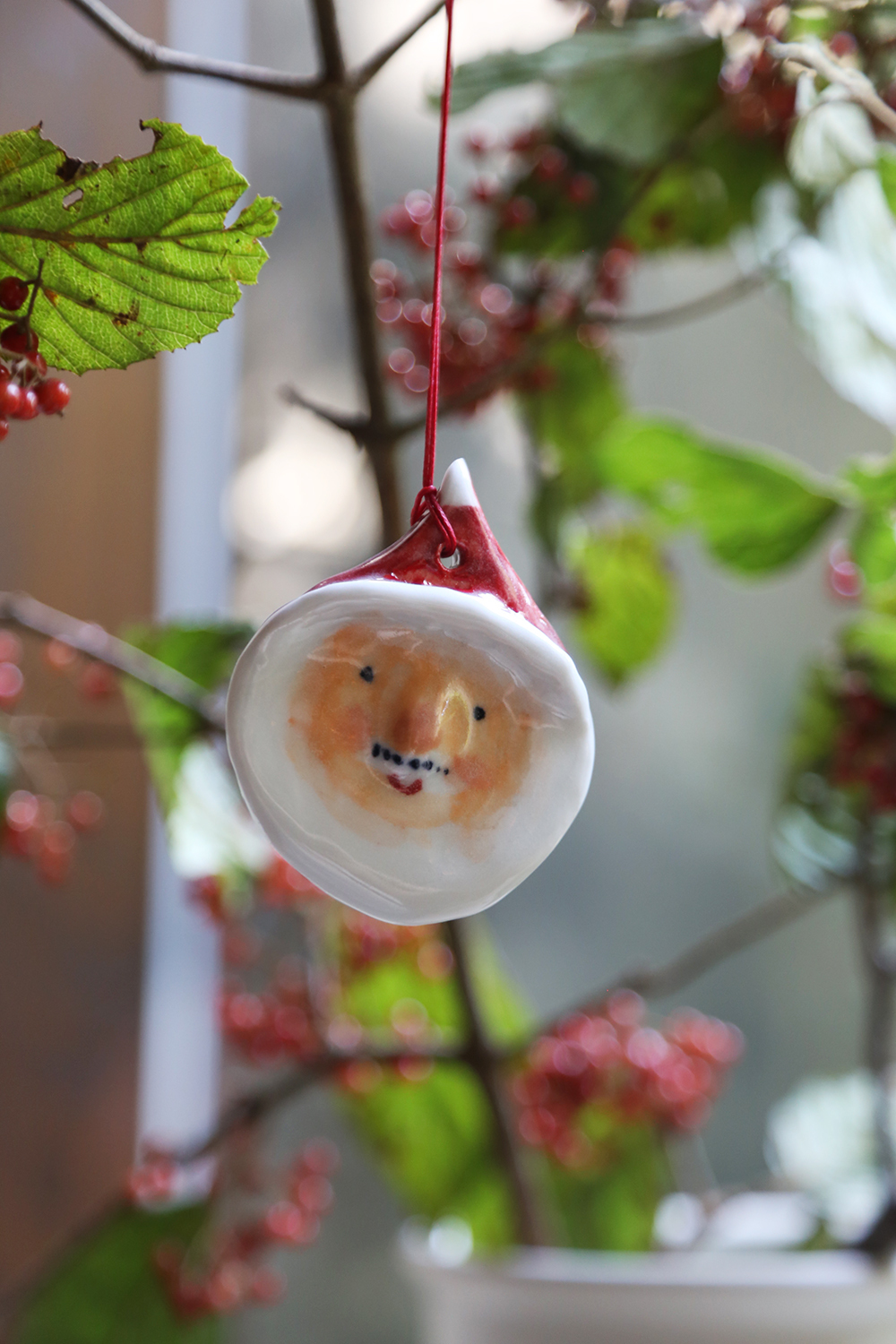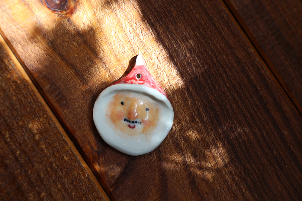 每隻聖誕老公公,都是陶土手捏上釉,因此每一個老公公個性表情都不同