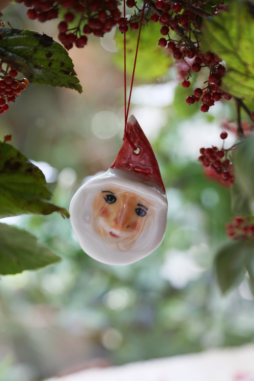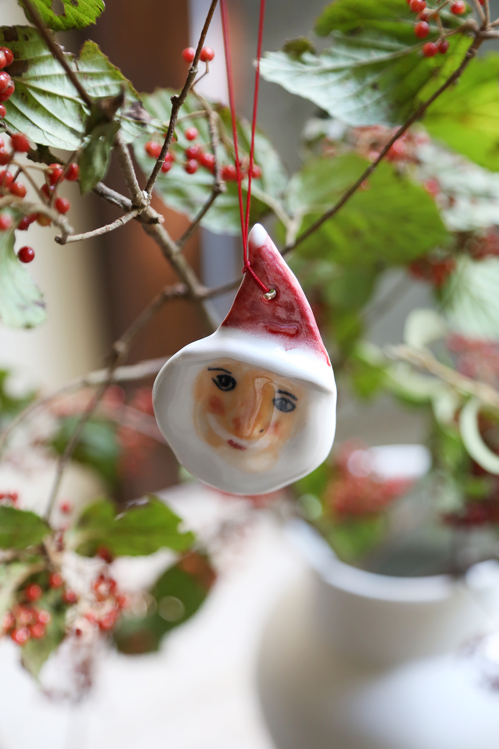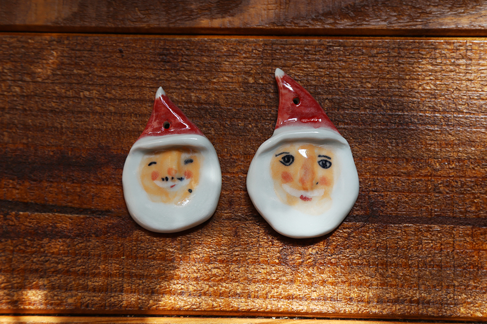 每隻聖誕老公公,都是陶土手捏上釉,因此每一個老公公個性表情都不同