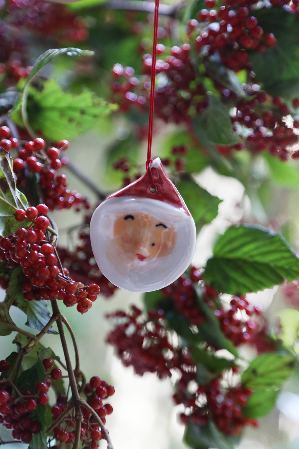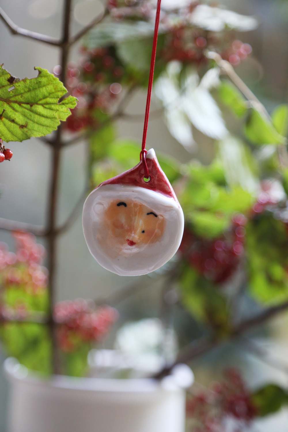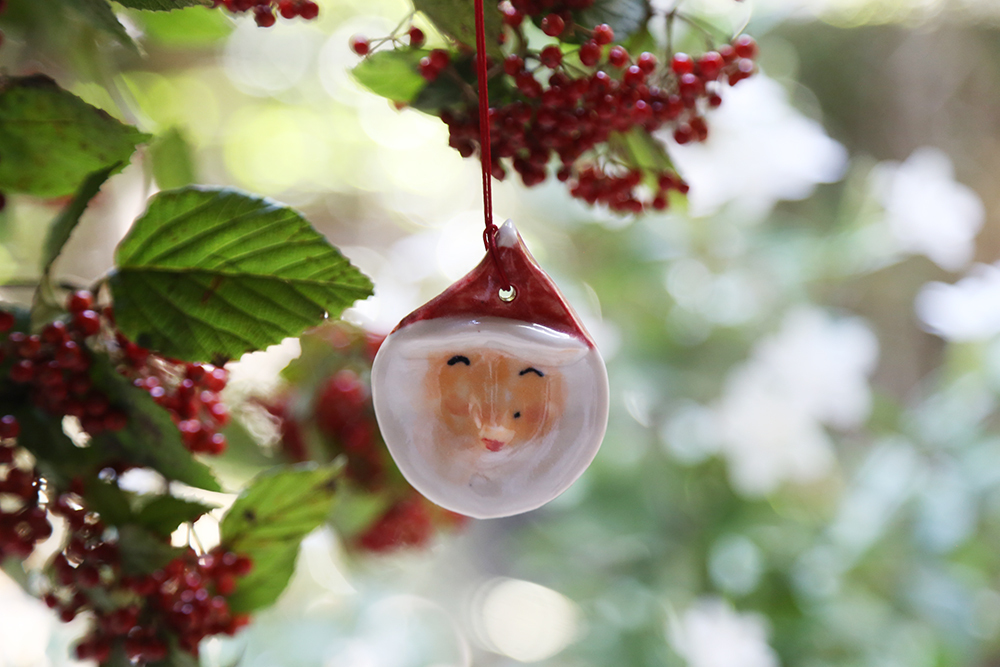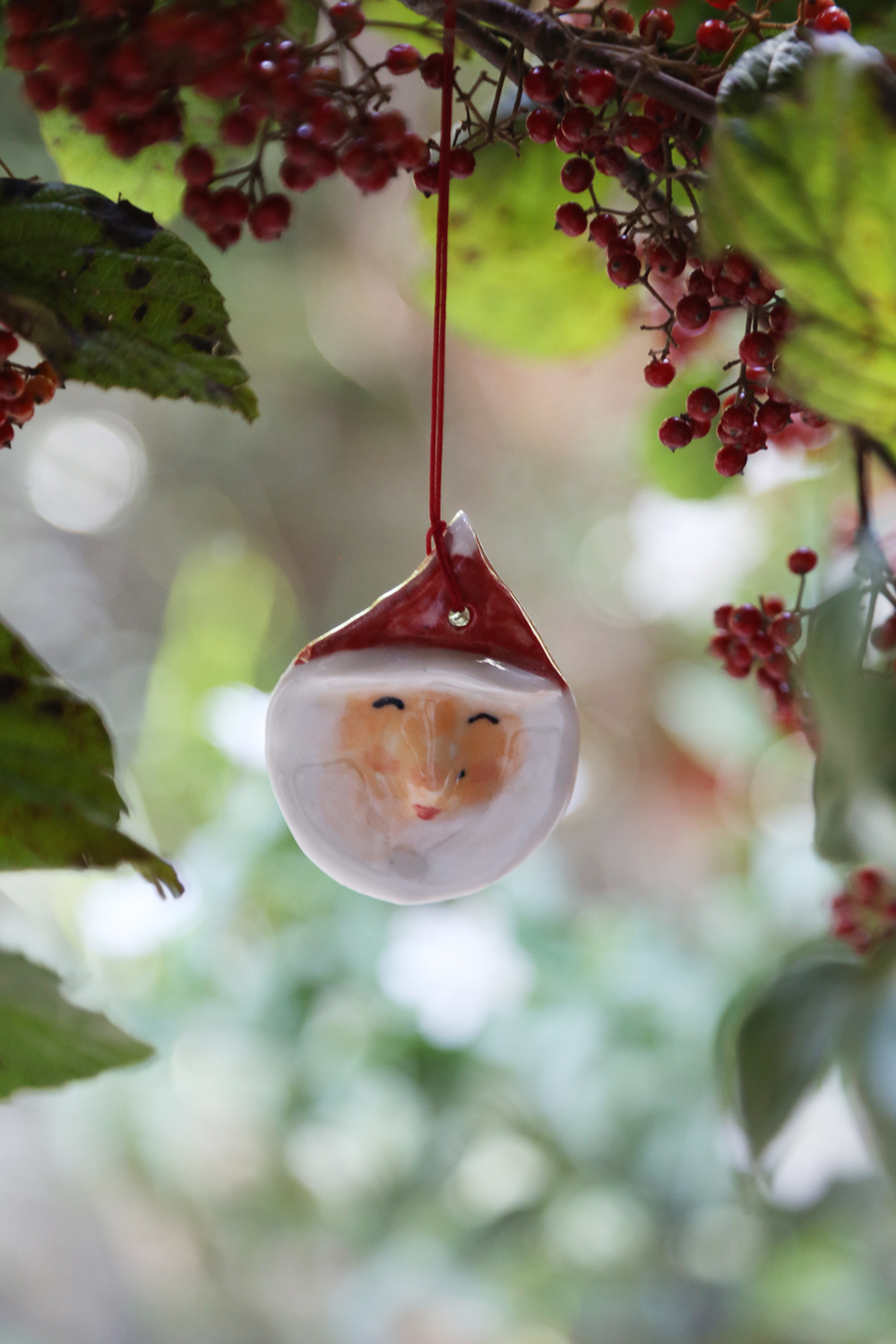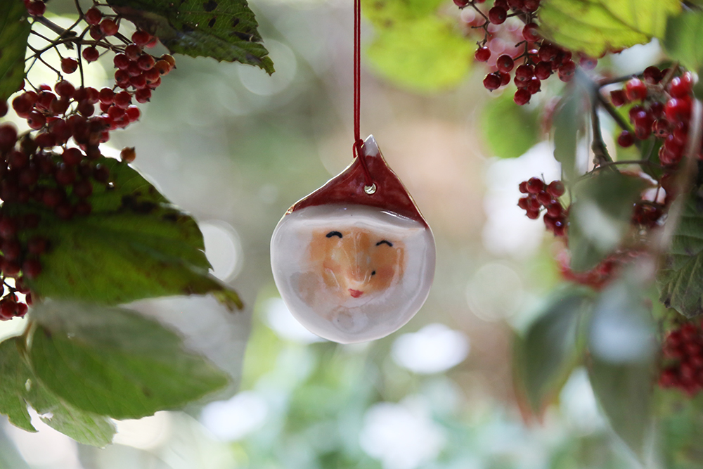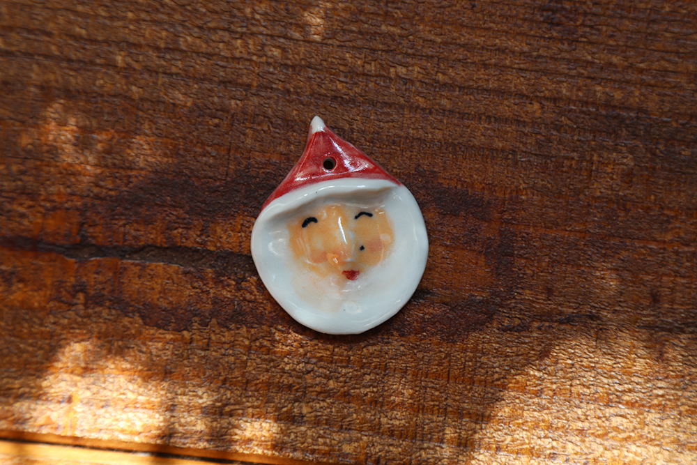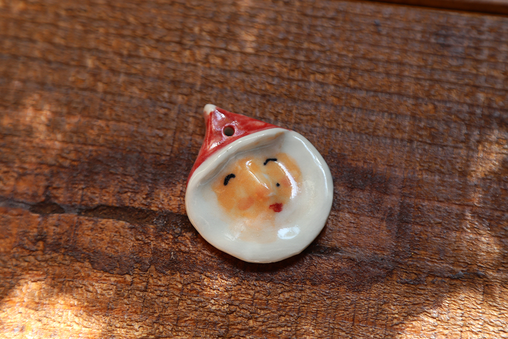 每隻聖誕老公公,都是陶土手捏上釉,因此每一個老公公個性表情都不同