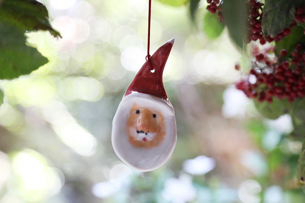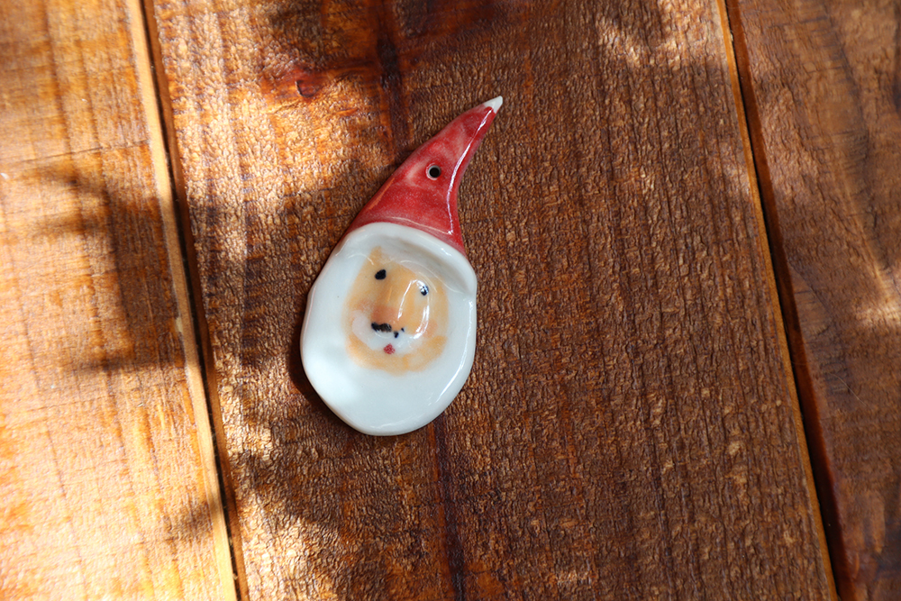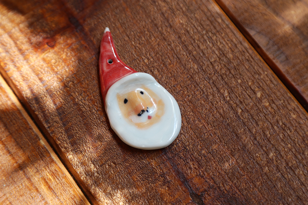 每隻聖誕老公公,都是陶土手捏上釉,因此每一個老公公個性表情都不同
