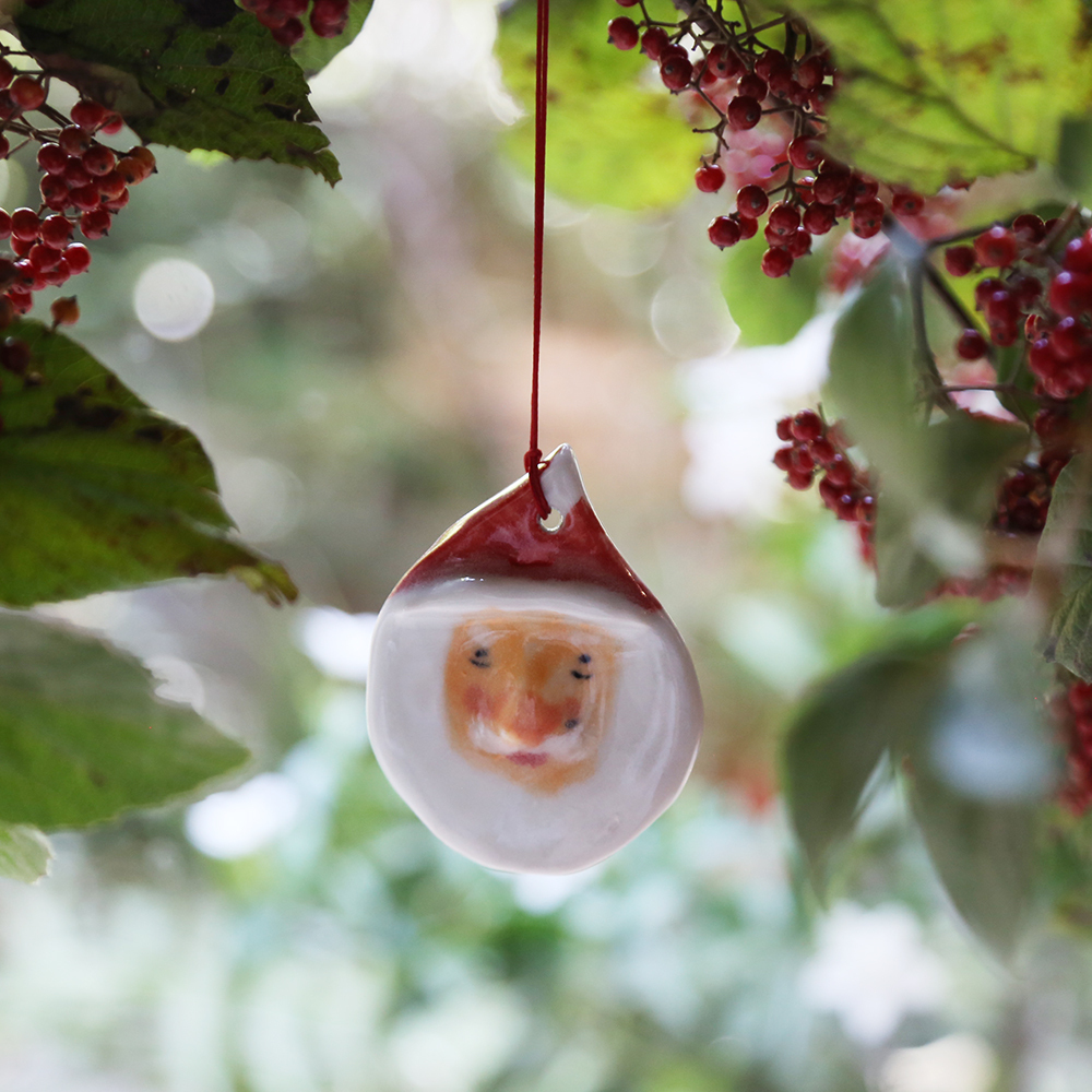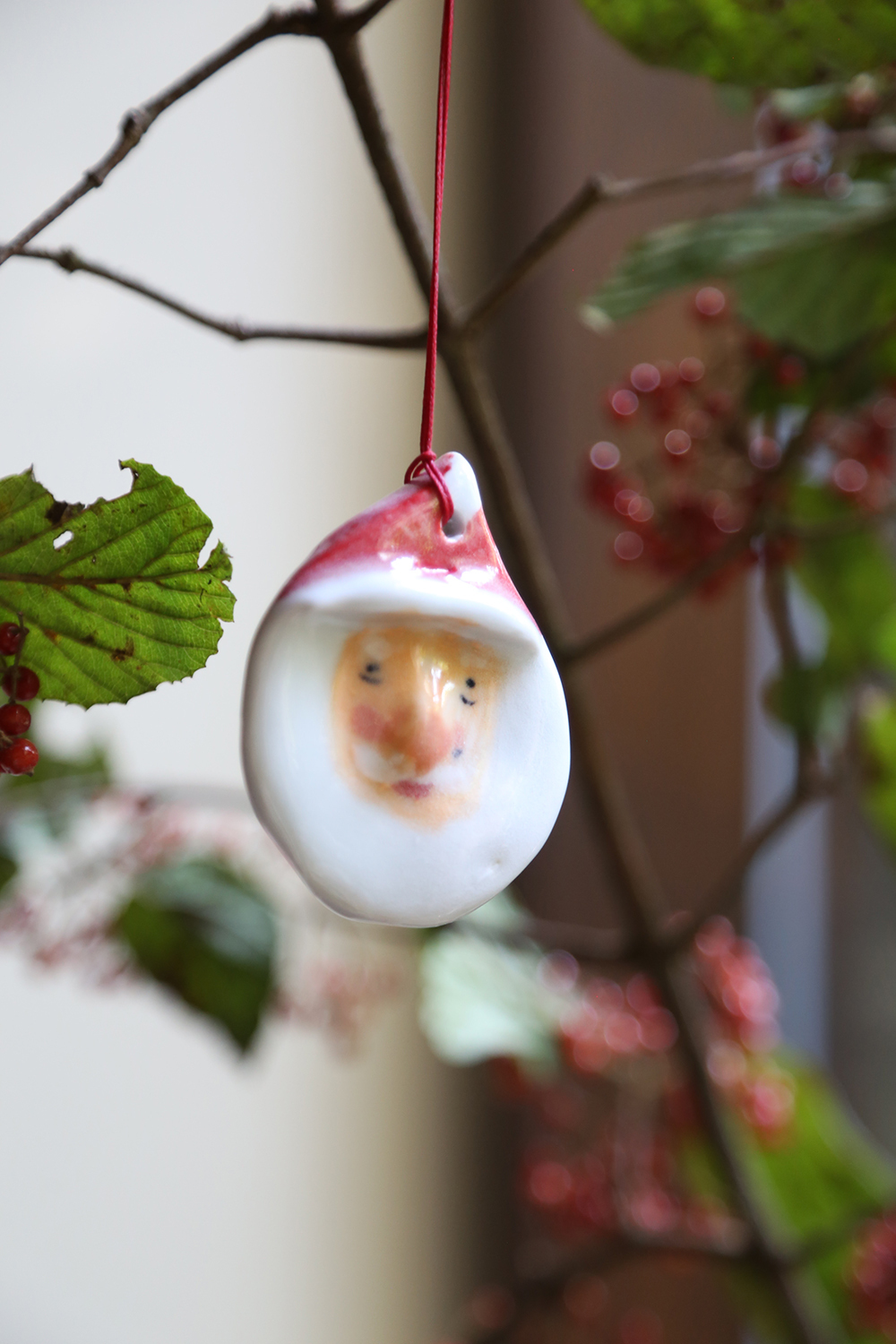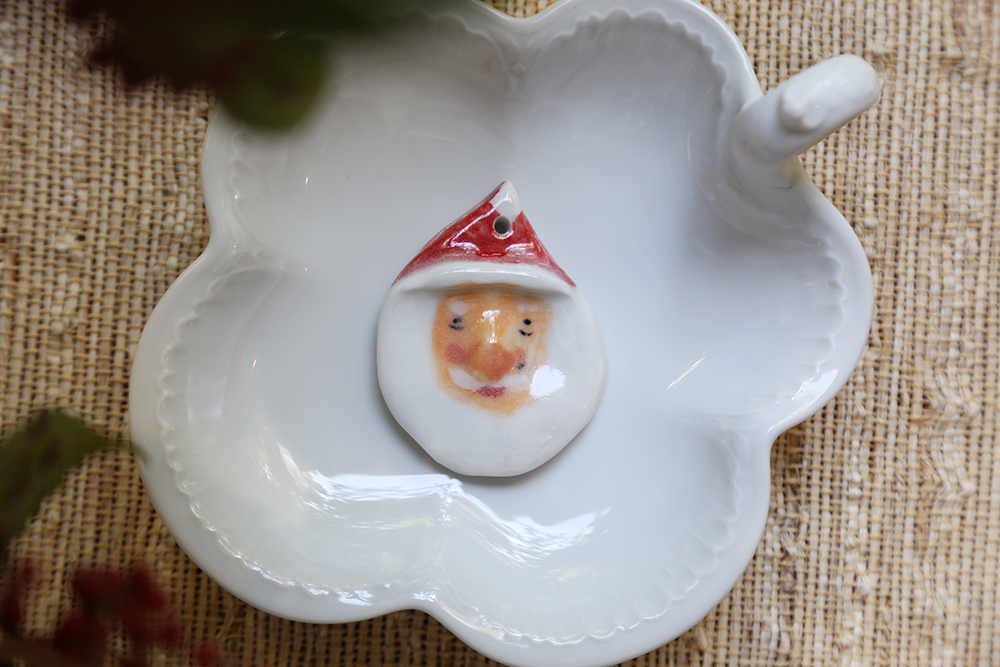 每隻聖誕老公公,都是陶土手捏上釉,因此每一個老公公個性表情都不同