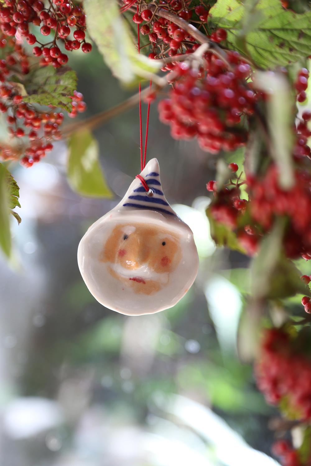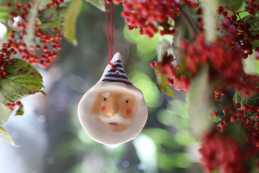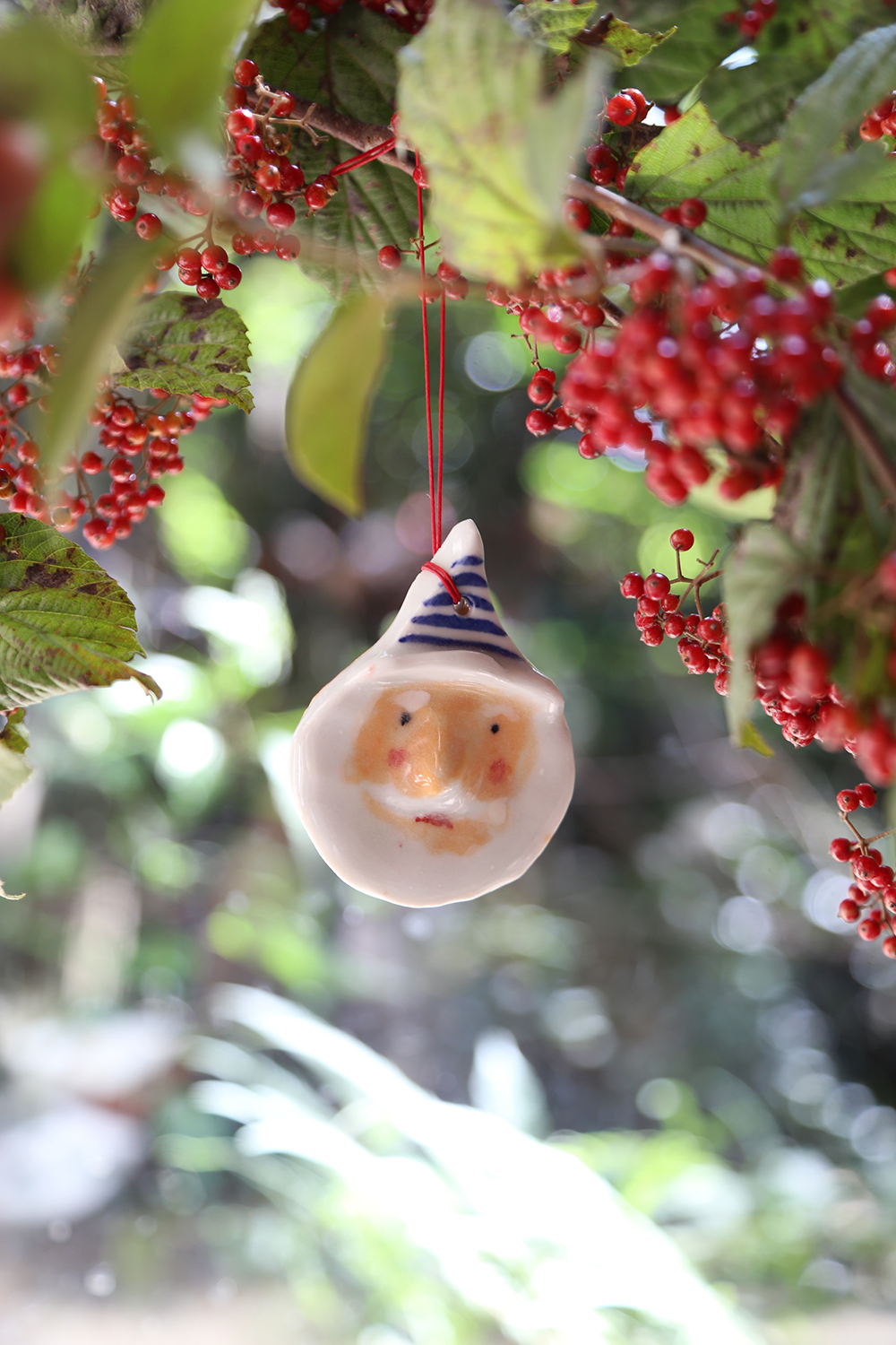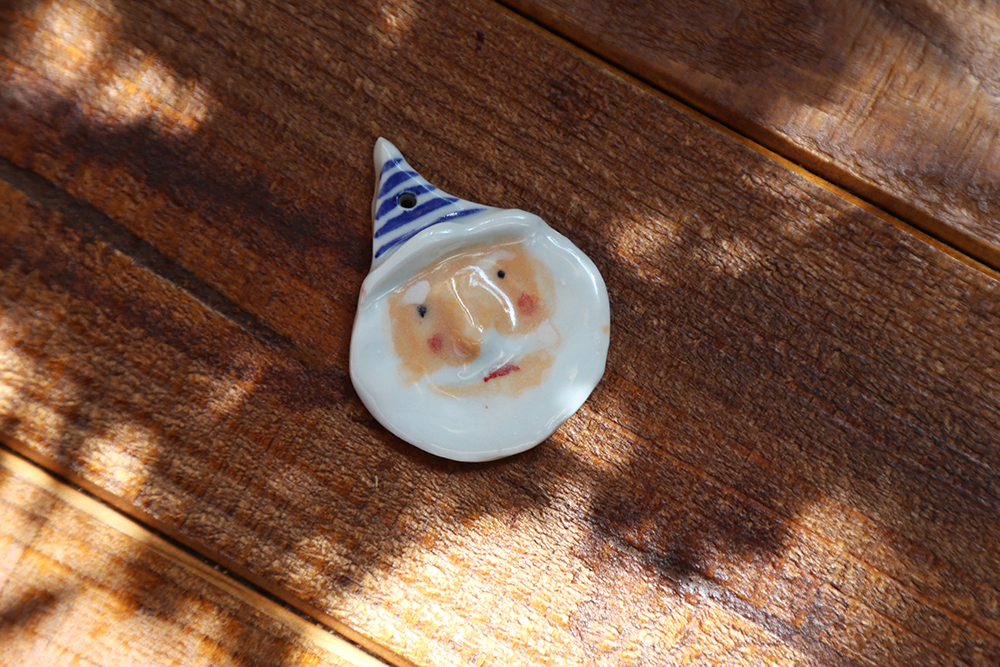 每隻聖誕老公公,都是陶土手捏上釉,因此每一個老公公個性表情都不同