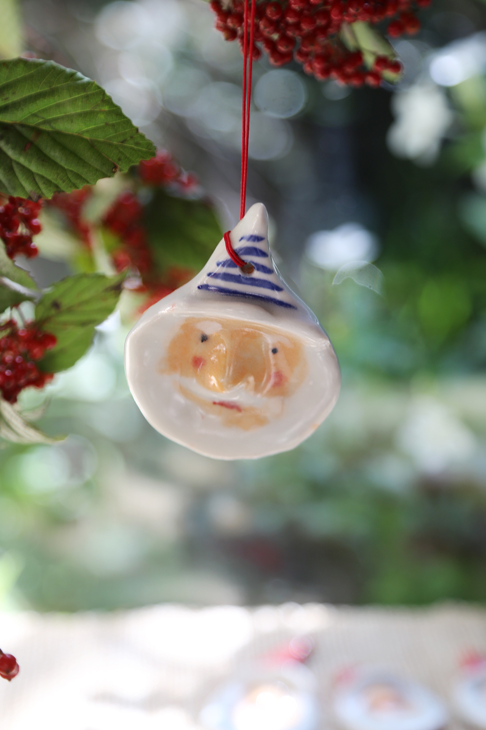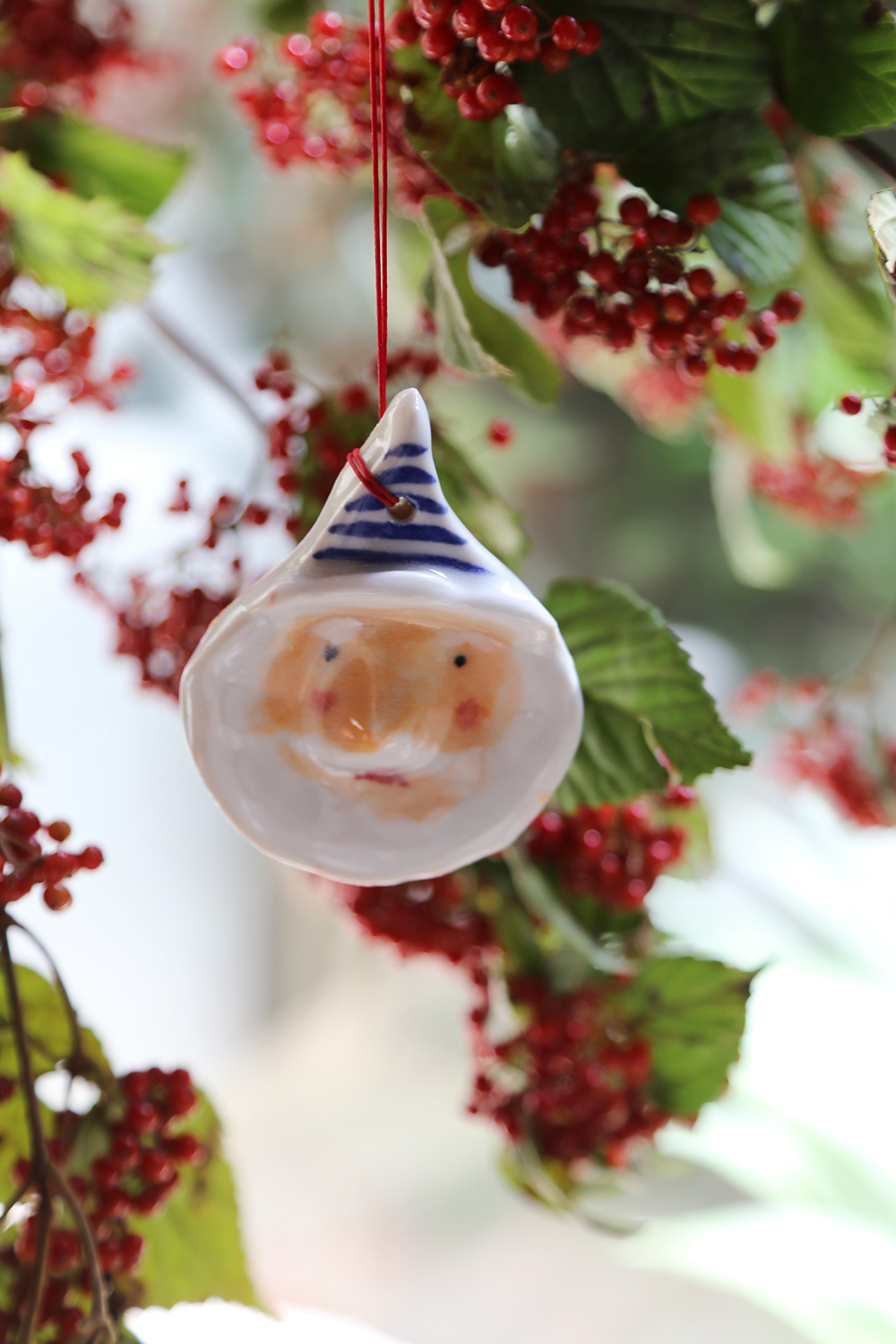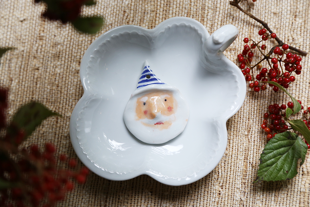 每隻聖誕老公公,都是陶土手捏上釉,因此每一個老公公個性表情都不同