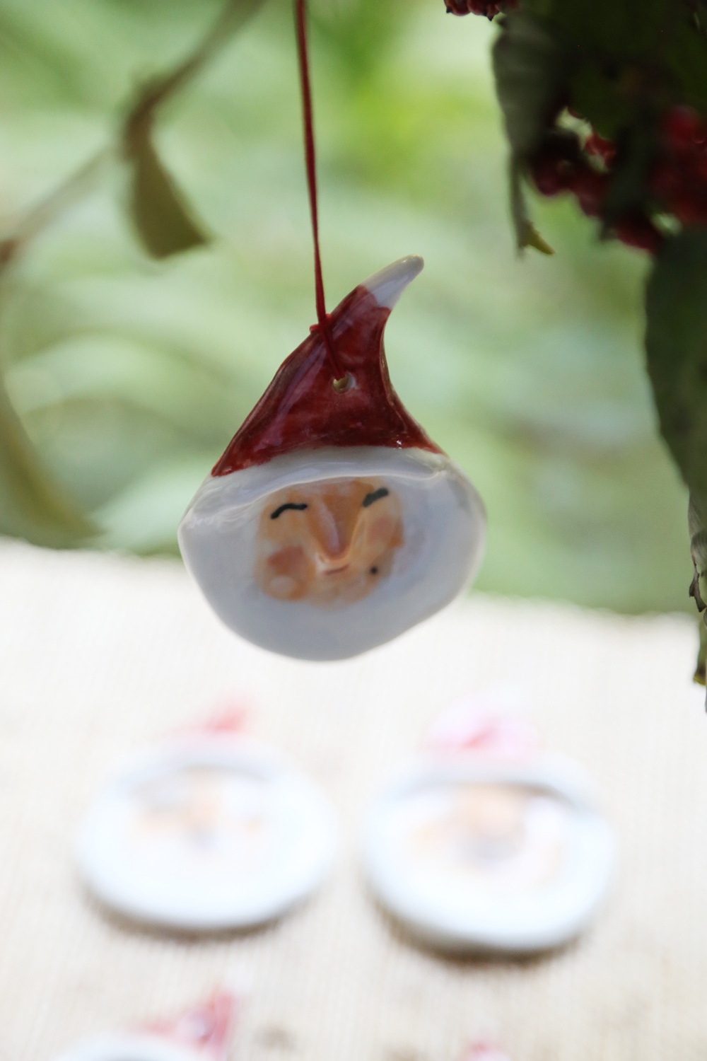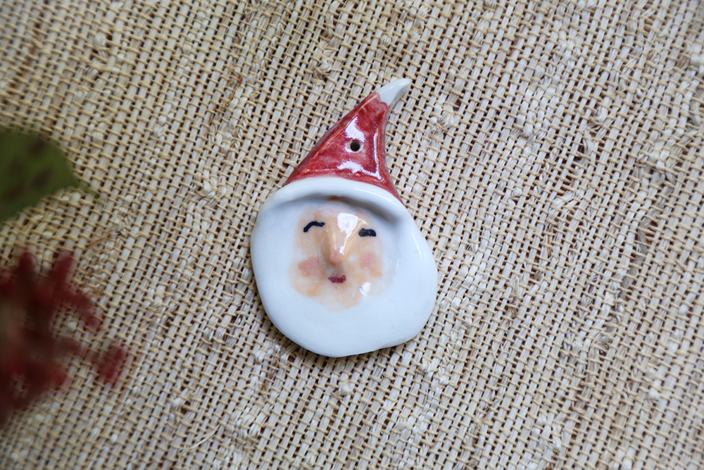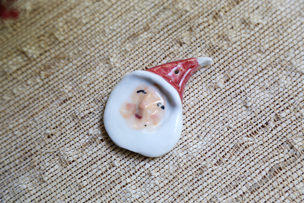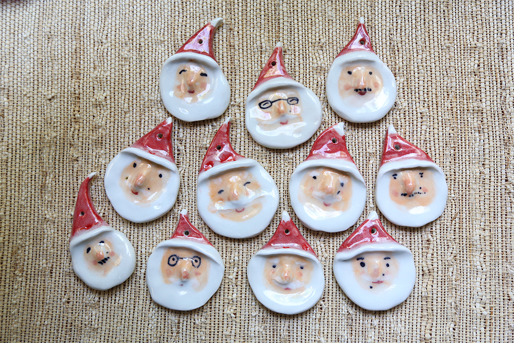 每隻聖誕老公公,都是陶土手捏上釉,因此每一個老公公個性表情都不同