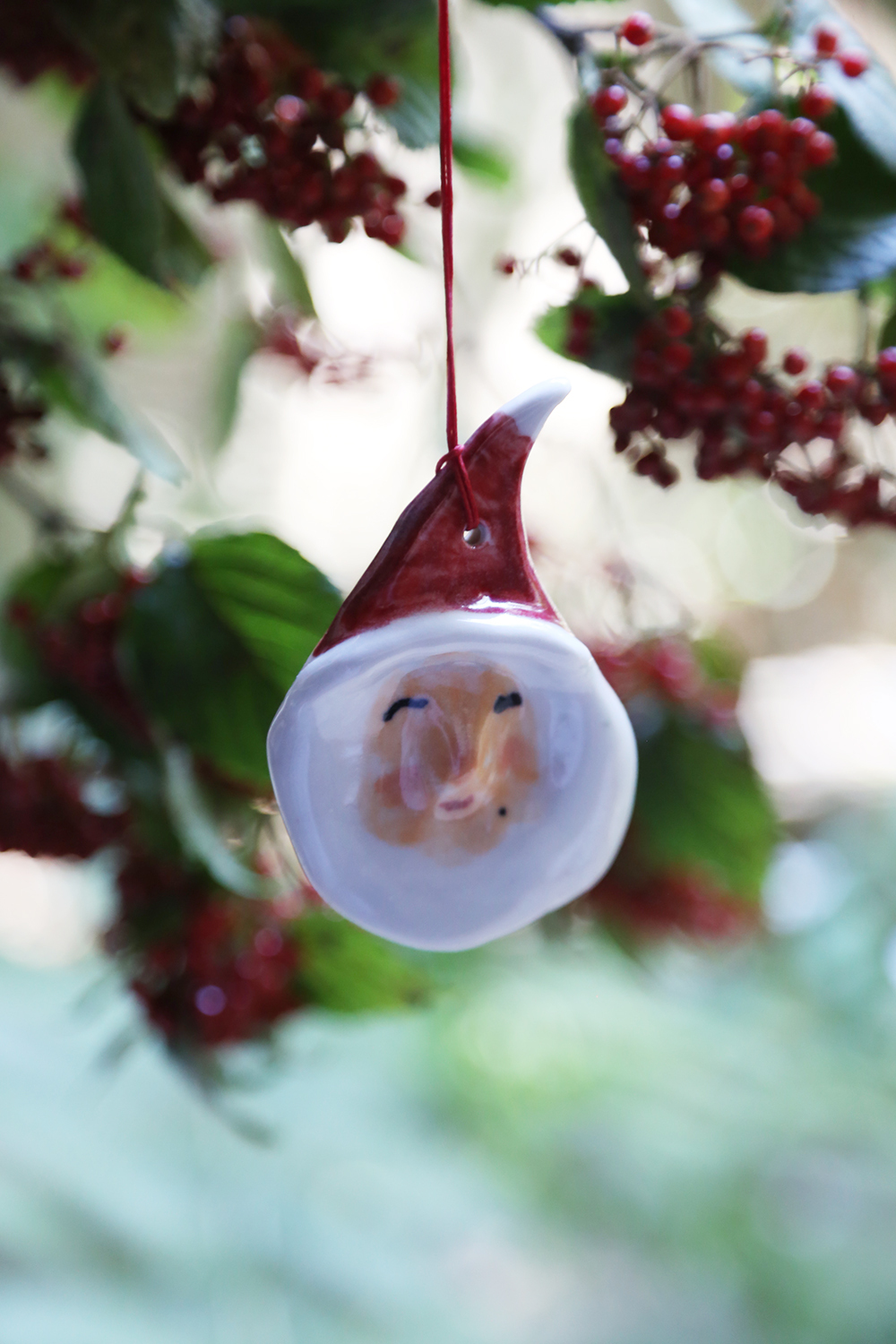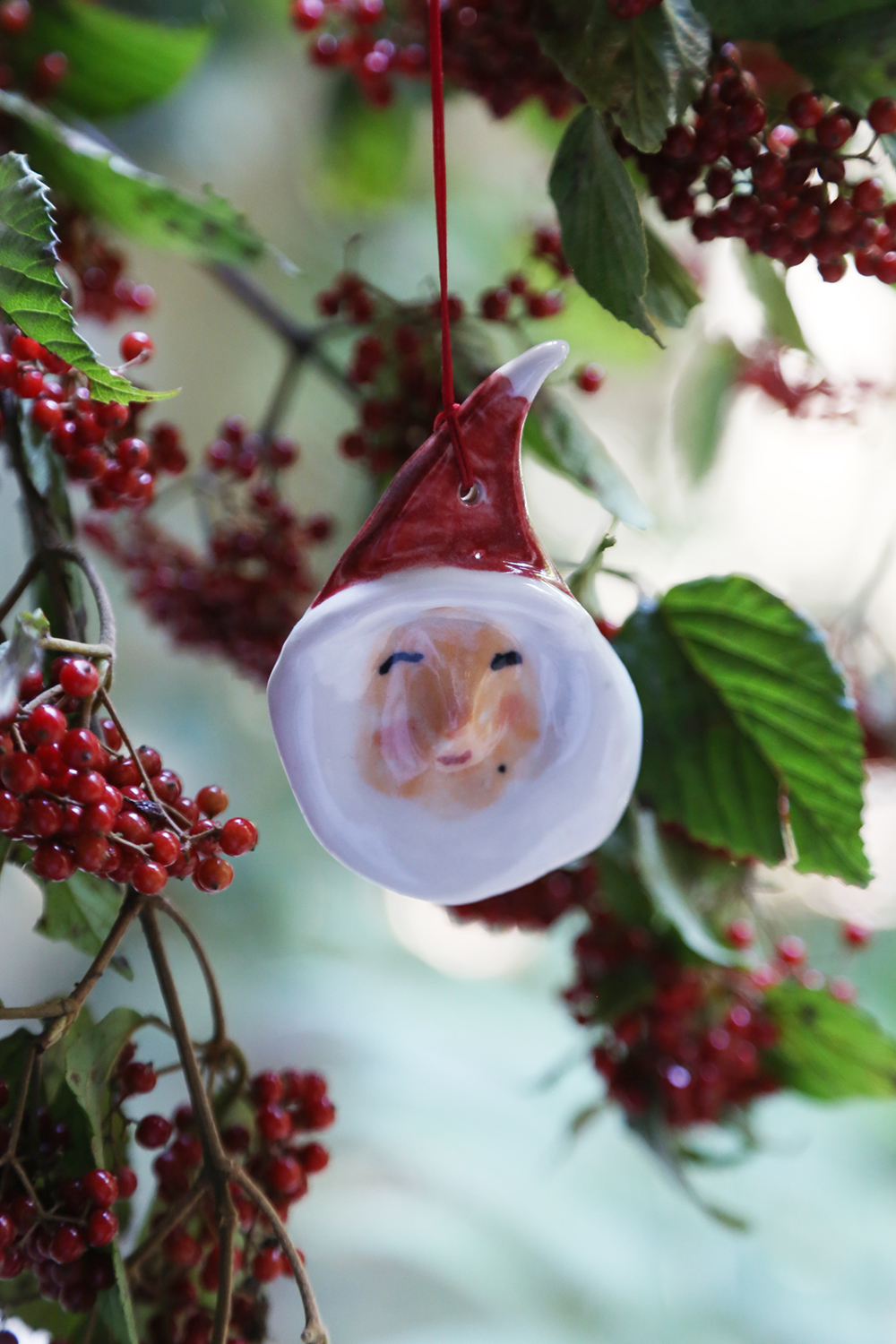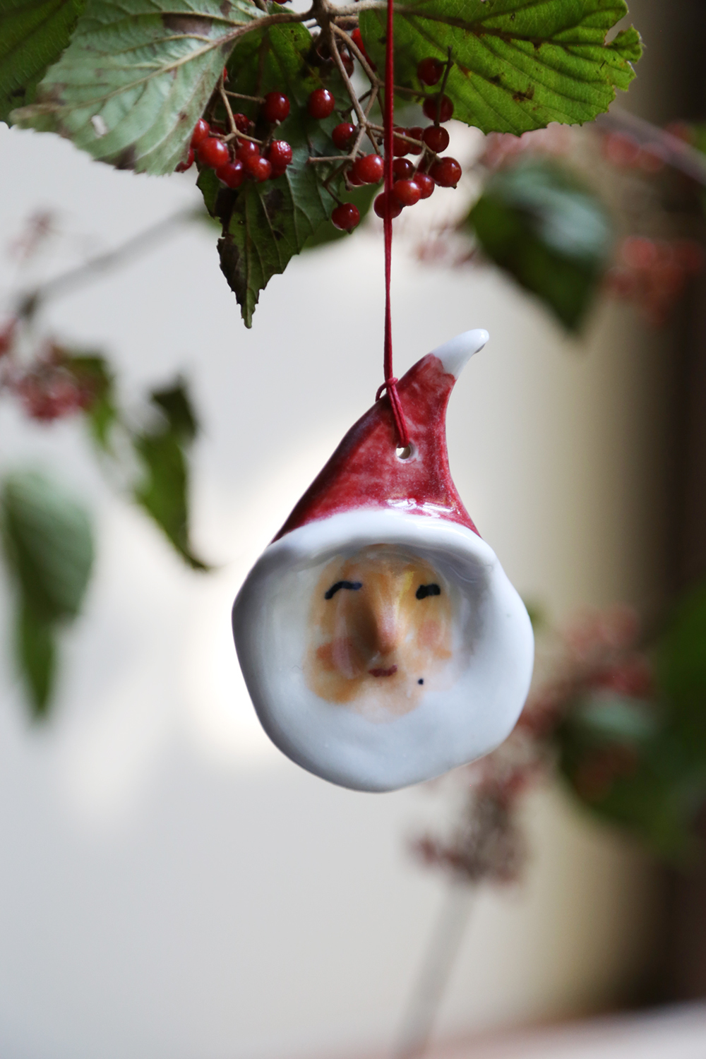 每隻聖誕老公公,都是陶土手捏上釉,因此每一個老公公個性表情都不同