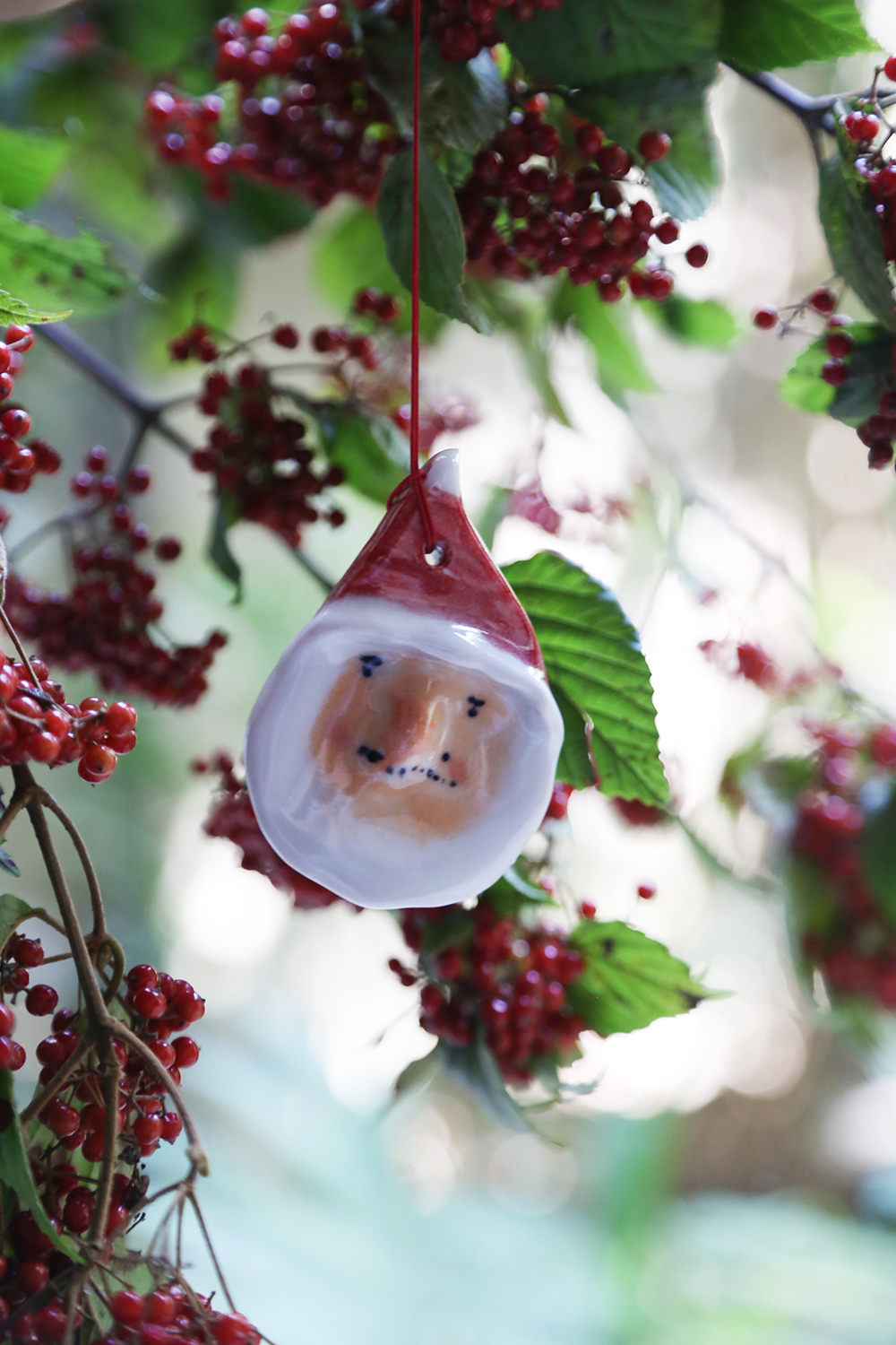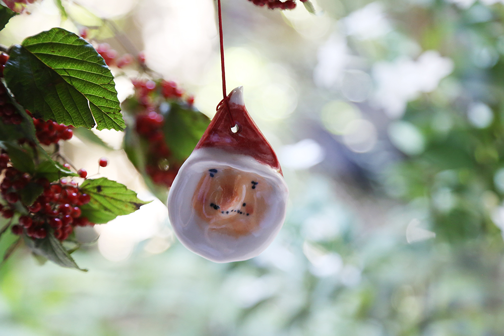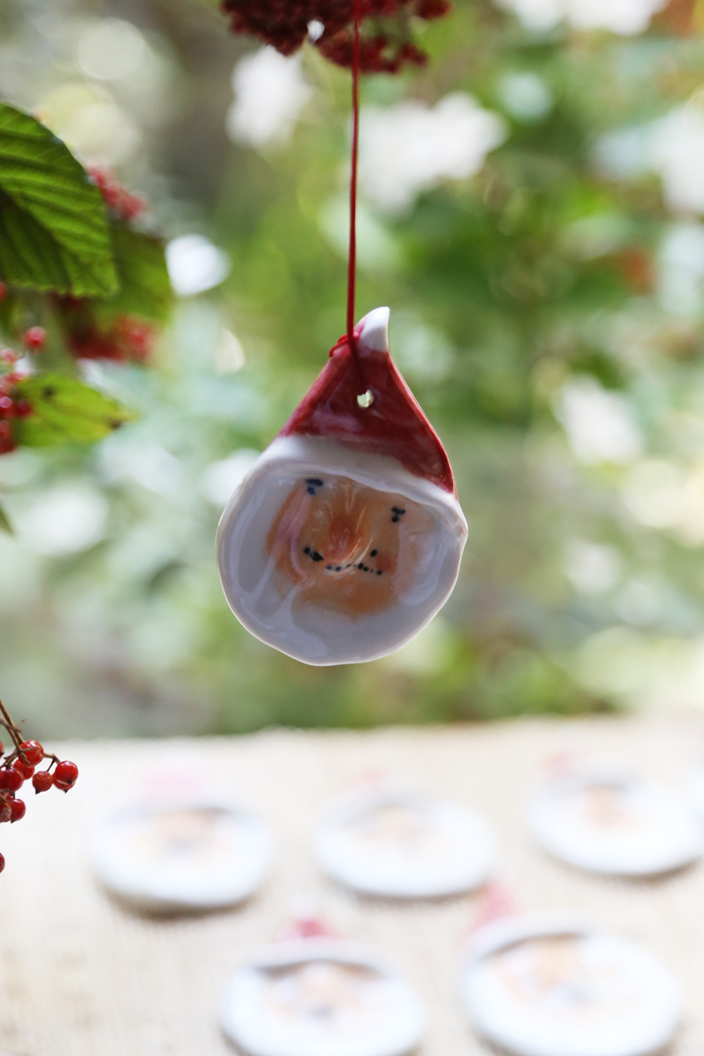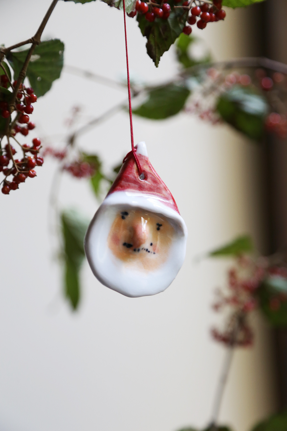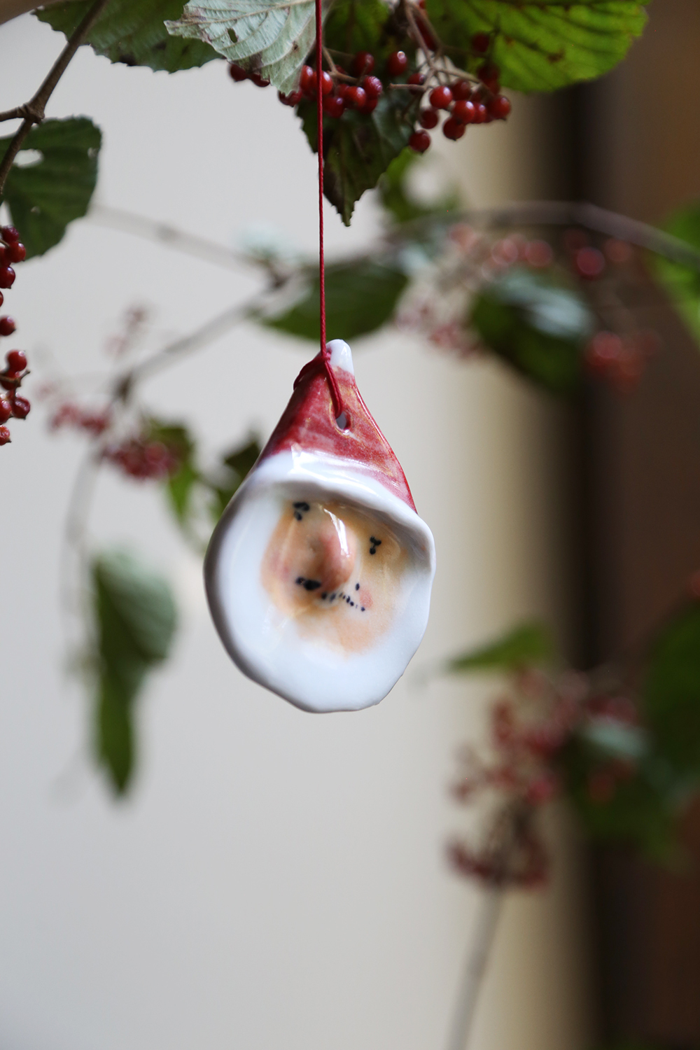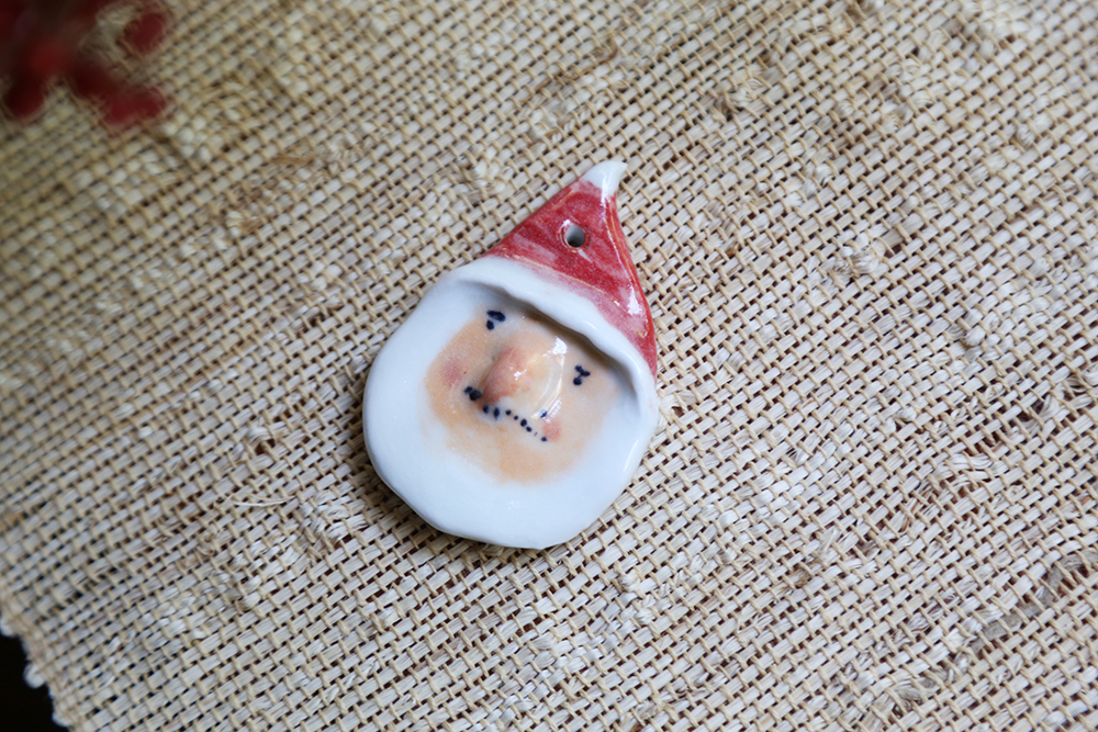 每隻聖誕老公公,都是陶土手捏上釉,因此每一個老公公個性表情都不同