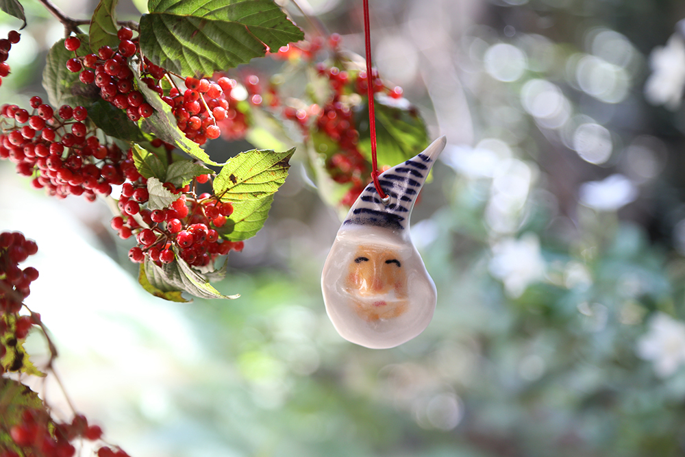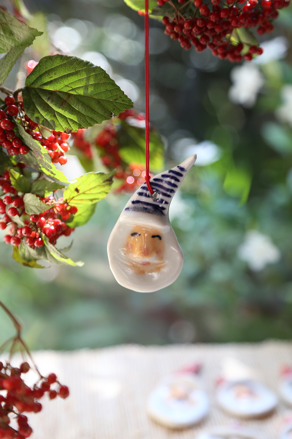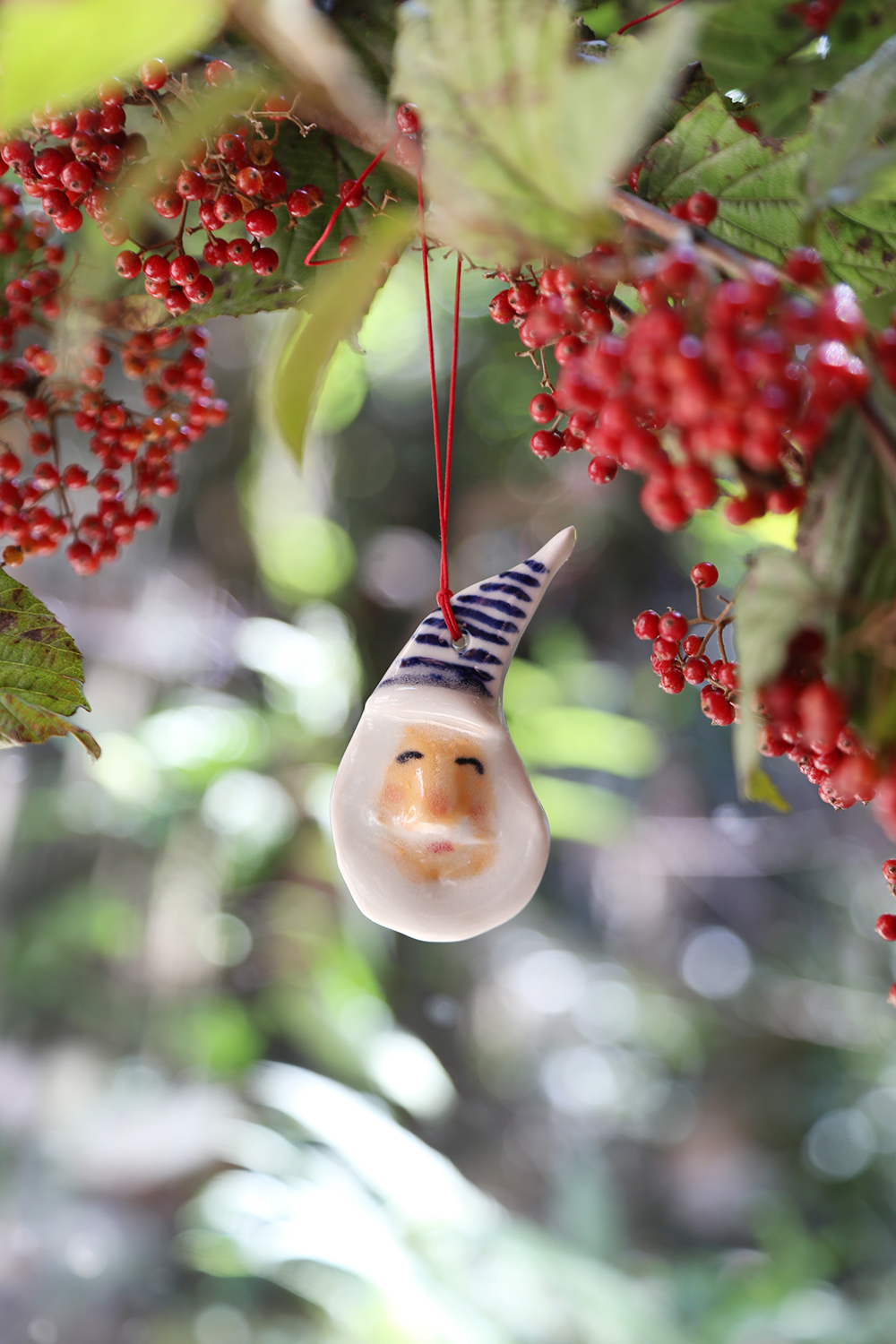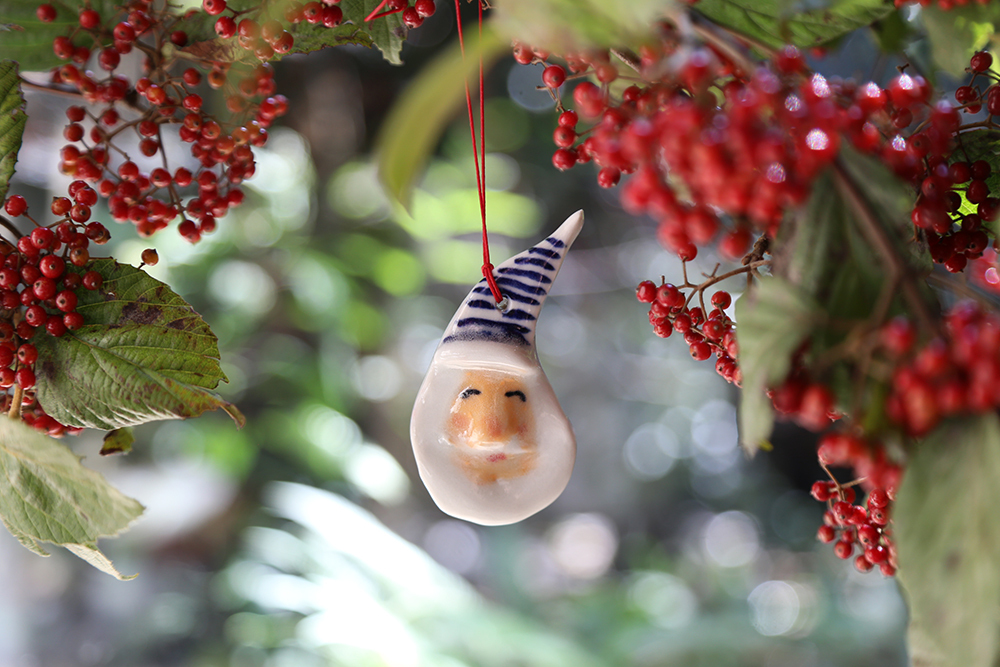 每隻聖誕老公公,都是陶土手捏上釉,因此每一個老公公個性表情都不同