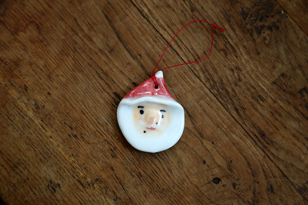 每隻聖誕老公公,都是陶土手捏上釉,因此每一個老公公個性表情都不同